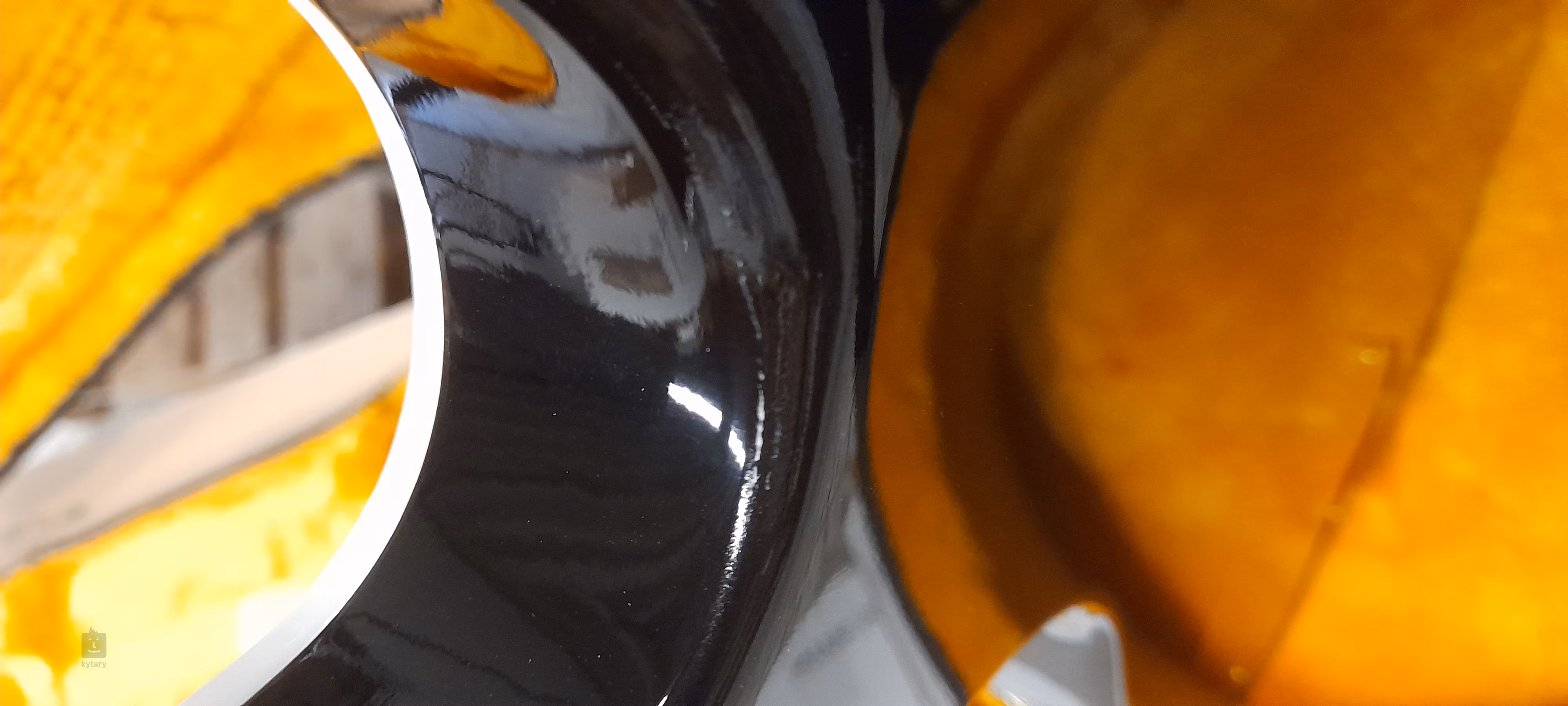 Uszkodzony towar – zadrapania i pęknięcia lakieru (patrz zdjęcie), poza tym w pełni sprawny. Podarta, nieestetyczna kartonowa pudełko.