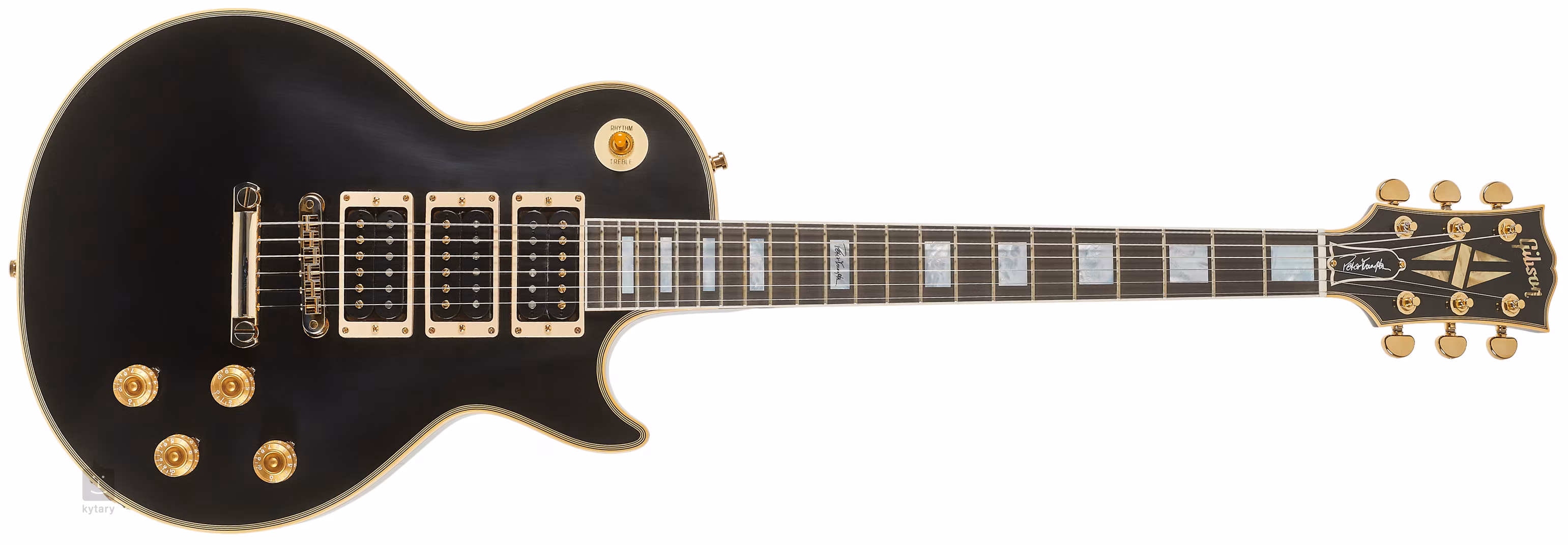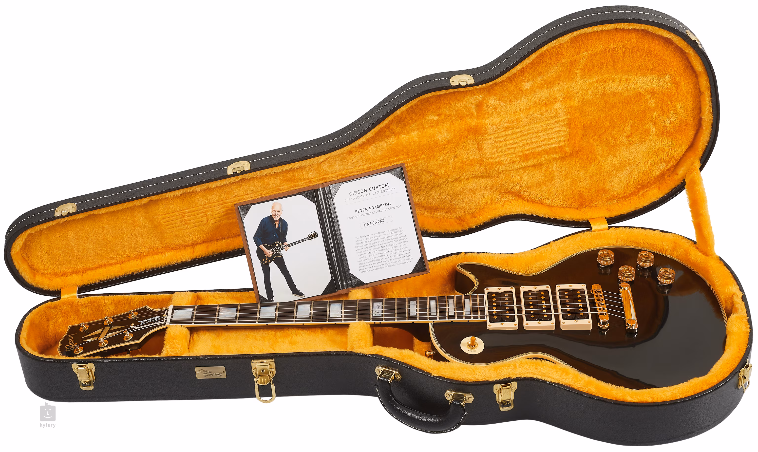 Gitara elektryczna "Phenix" Les Paul Custom, którą można usłyszeć na okładce słynnego nagrania "Frampton Comes Alive!". Gitara Petera Framptona była uważana za zaginioną/zniszczoną przez wiele lat po katastrofie lotniczej w 1980 roku, zanim powstała jak Feniks z popiołów i wróciła do właściciela trzydzieści lat później. A raczej została zwrócona, żeby nie być zbyt wymyślnym. W każdym razie historia ta jest na tyle interesująca, że skłoniła dobrych ludzi z Gibson Custom Shop do stworzenia gitary Peter Frampton "Phenix" Inspired Les Paul Custom VOS Ebony inspirowanej The "Phenix" Les Paul Custom.