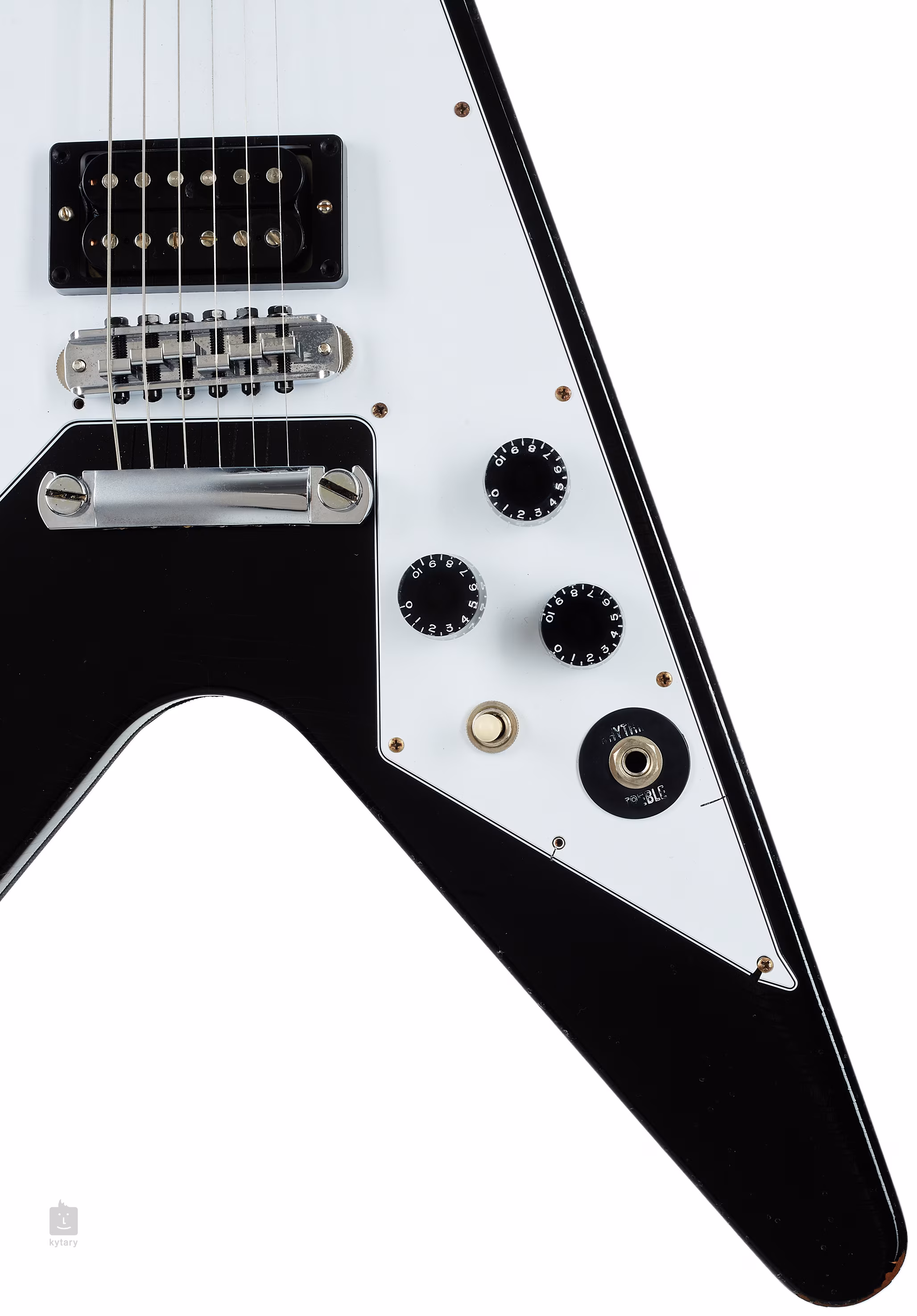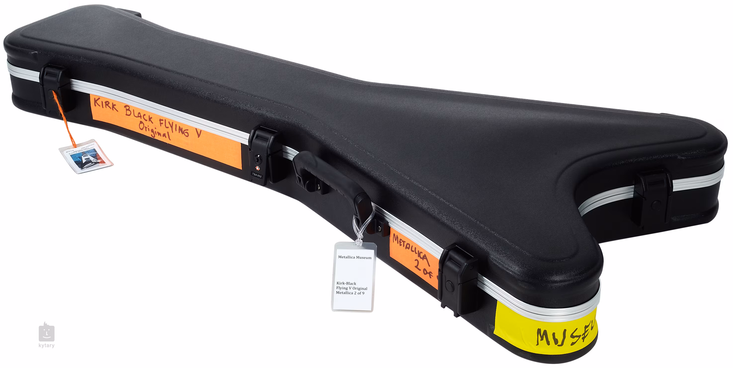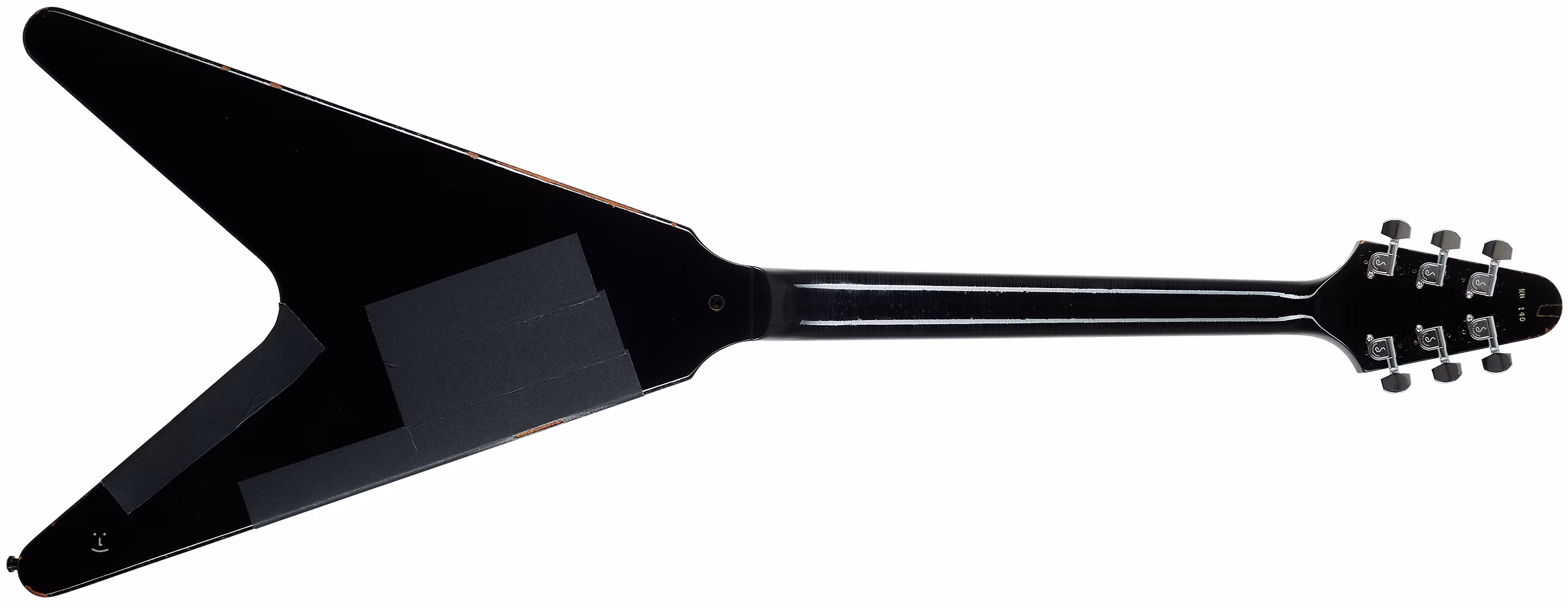 79 Flying V Kirk Hammett Ebony Murphy Lab Replica Aged LTD 200 Worldwide to dokładna replika gitary Flying V Kirka Hammetta (Metallica) z 1979 roku, na której Kirk gra do dziś i której używał na każdym ważnym nagraniu Metalliki od "Kill 'Em All" po "The Black Album". Jest to model z Gibson Custom Shop w Nashville (Tennessee), szczycący się najwyższej jakości materiałami, oryginalną specyfikacją oryginalnego modelu (przetworniki, elektronika, osprzęt), a także sztuczną procedurą starzenia nadzorowaną przez mistrza gitary Toma Murphy'ego w jego "Murphy Lab". Każda rysa, każda brakująca śrubka, pasek taśmy z tyłu korpusu i na obudowie lub replika napisu podkreślają autentyczność tej niezwykłej limitowanej edycji.