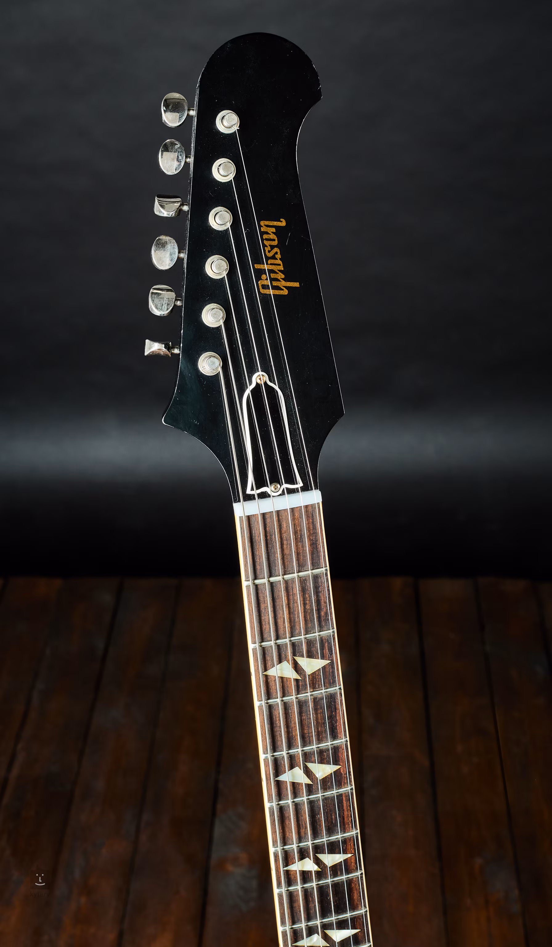 Awangardowy model sygnowany przez amerykańskiego wokalistę i gitarzystę Triniho Lopeza, który wyróżnia się główką z modelu Firebird oraz wąskimi, rombowymi otworami rezonansowymi. Ten konkretny egzemplarz został wyprodukowany w warsztacie Gibson Custom w 2024 roku. Gitara jest w dobrym stanie technicznym.