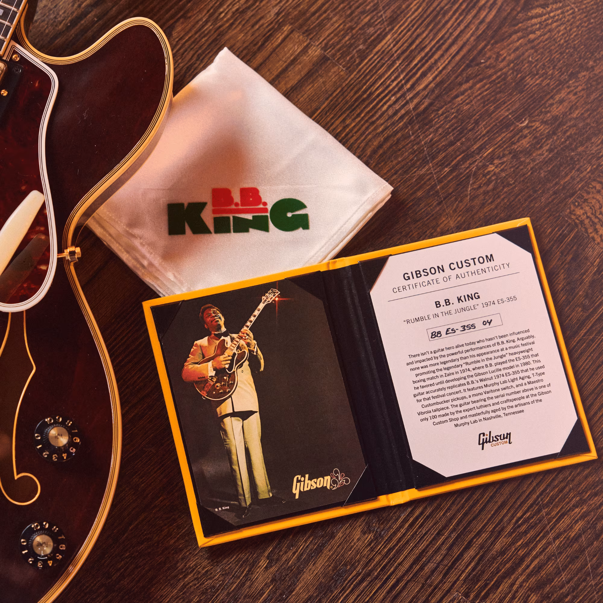 Najwyższej klasy Gibson B.B. King "Rumble in the Jungle" 1974 ES-355 oddaje hołd bluesowej legendzie B. B. Kingowi i jego równie legendarnemu afrykańskiemu występowi z 1974 roku promującemu jedną z walk bokserskich stulecia pomiędzy Muhammadem Alim i George'em Foremanem, znaną obecnie jako "Rumble in the Jungle". Nie był to jednak ten, w którym B. B. King na modelu Gibson Walnut ES-355 z 1974 roku, który preferował do czasu wycofania modelu Gibson Lucille.