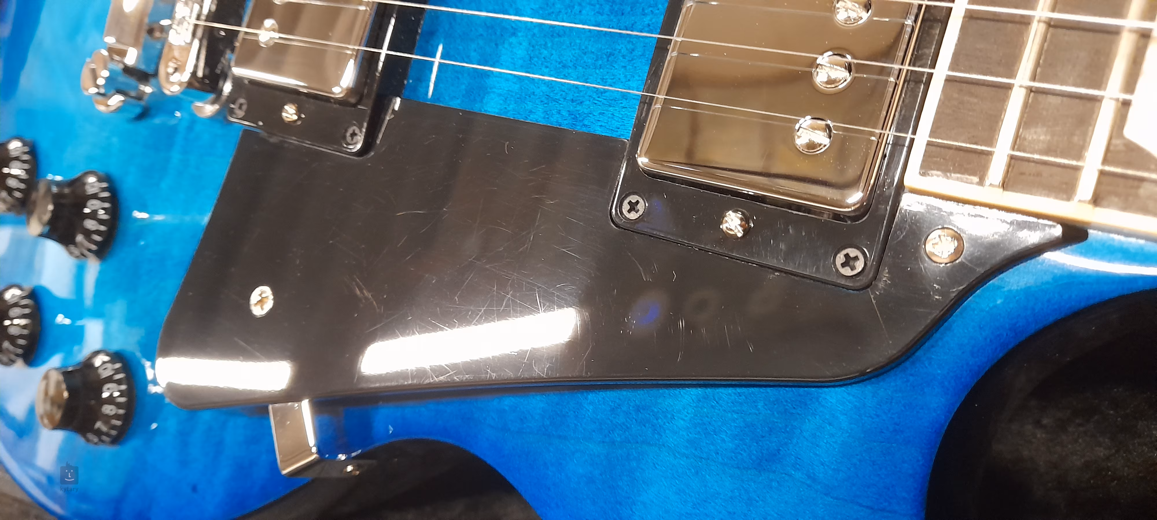 Gitary elektryczne Gibson Les Paul Studio łączą w sobie esencję projektu Les Paul z elementami przyjaznymi dla gracza, takimi jak lekki korpus lub humbuckery push/pull. Dzięki braku elementów dekoracyjnych są one bardziej przystępne cenowo niż modele LP z wyższej półki i cieszą się popularnością zarówno wśród aktywnych muzyków, jak i graczy studyjnych. Gitary Gibson Les Paul Studio po prostu należą na scenę, a nie do gabloty. Mahoniowy korpus gitary Les Paul Studio Session Cobalt Burst zdobi rzeźbiony top z klonu fládrovaného o jakości AA. Dzięki komorom rezonansowym korpusu (modyfikacji Ultra Modern Weight Relief) instrument jest znacznie lżejszy niż klasyczne modele LP, zachowując jednocześnie typowe brzmienie i charakter Les Paula.Cienka powłoka w postaci lakieru nitrocelulozowego pozwala drewnu gitary oddychać i poprawia jakość brzmienia instrumentu. Do mahoniowego gryfu przyklejono hebanowy podstrunnicę z dwudziestoma progami rozmiaru Medium Jumbo. Orientację na podstrunnicy ułatwiają blokady pozycyjne z imitacji masy perłowej. Szybki profil szyjki Slim Taper, profilowana podstawa szyjki i dwunastocalowy promień podstrunnicy gwarantują doskonałe właściwości gry na instrumencie i dobre wyczucie we wszystkich pozycjach podstrunnicy. Firmowe humbuckery ’57 Classic/’57 Classic Plus zapewniają gitarze ciepłe, pełne brzmienie humbuckerów PAF – model Plus ma nieco większą liczbę zwojów, dokładnie tak jak humbuckery PAF z końca lat 50., co jednak nie było zamierzone, a wynikało z przypadku. Charakter brzmienia można regulować za pomocą dwóch potencjometrów głośności (osobno dla każdego przetwornika), dwóch tonów i trzypozycyjnego przełącznika przetworników. Podobnie jak w modelach Modern, wszystkie potencjometry są wyposażone w funkcje push/pull – w przypadku regulatorów głośności jest to funkcja coil-tap, która po podciągnięciu potencjometrów zmienia charakter brzmienia z humbuckera na single-coil, w przypadku regulatorów push/pull tonów można zmienić połączenie przetworników (poza fazą) lub ominąć wszystkie regulatory (pure bypass) i wysłać sygnał z przetwornika mostkowego najkrótszą drogą do gniazda wyjściowego. Stabilne strojenie gwarantuje mocowanie strun w mechanizmach Grover Rotomatic z kołkami Keystone i przez aluminiowy most Nashville Tune-O-Matic w strunociągu. Stylowy wygląd instrumentu podkreślają chromowane elementy i czarna płytka ochronna. Gitara jest dostarczana w miękkim futerale wraz z akcesoriami.