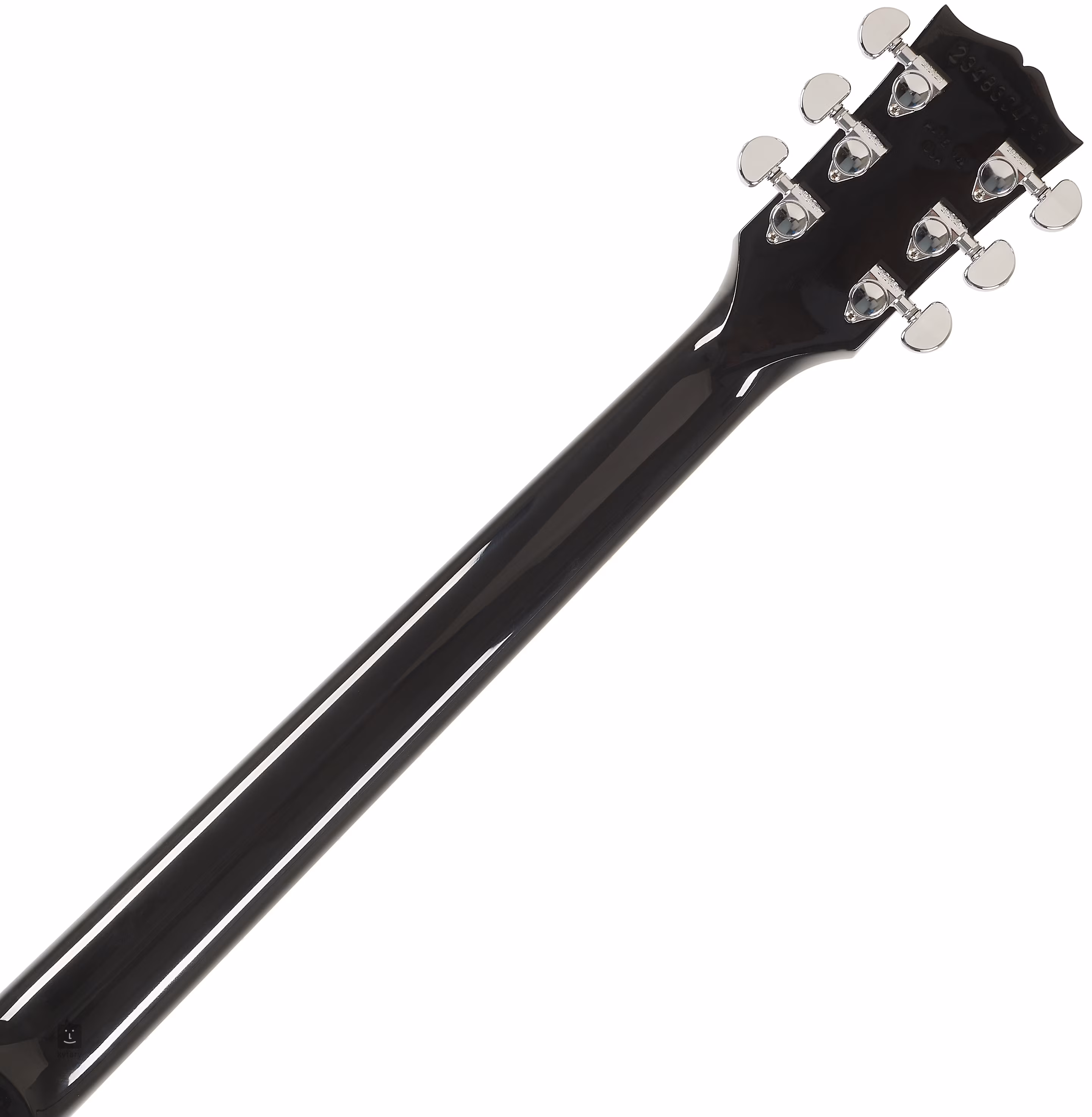 Korpus gitary SG Standard Ebony wykonany jest z mahoniu. Cienka powłoka w postaci lakieru nitrocelulozowego pozwala drewnu gitary oddychać i poprawia jakość brzmienia instrumentu. Do mahoniowej szyjki przyklejona jest palisandrowa podstrunnica wyposażona w dwadzieścia dwa progi o rozmiarze Medium Jumbo. Orientację na podstrunnicy ułatwiają blokady pozycyjne z imitacji masy perłowej w kształcie trapezu.