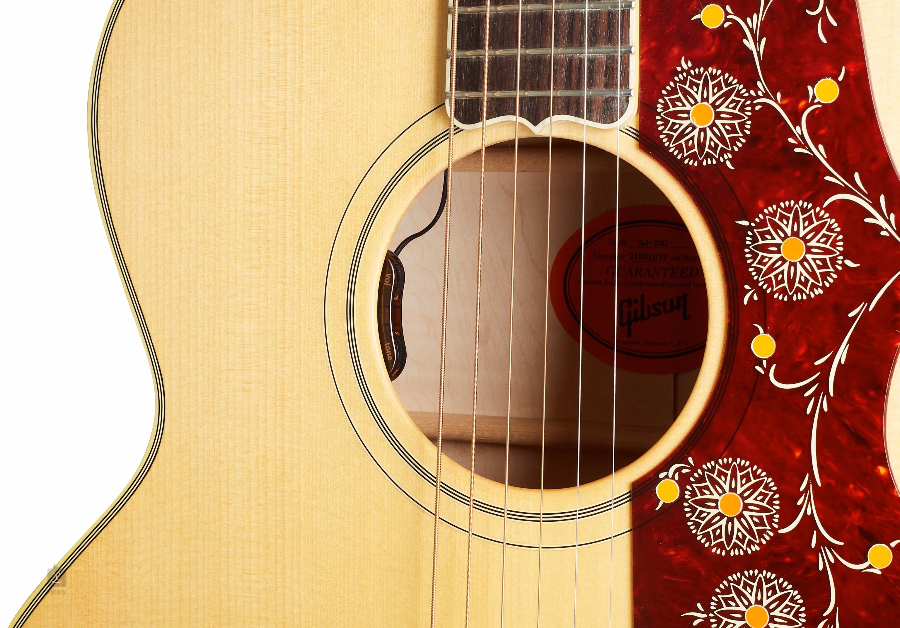 Front SJ-200 Original wykonany jest z litego świerku Sitka, natomiast tył i boki z litego klonu płomienistego o charakterystycznym usłojeniu. Rezonans góry jest wspierany przez ręcznie wycinane ożebrowanie typu X. Dwuczęściowa klonowa szyjka jest przyklejona do palisandrowej podstrunnicy z dwudziestoma standardowymi progami. Orientację na powierzchni podstrunnicy ułatwiają dekoracyjne korony Graduated Crowns wykonane z masy perłowej.