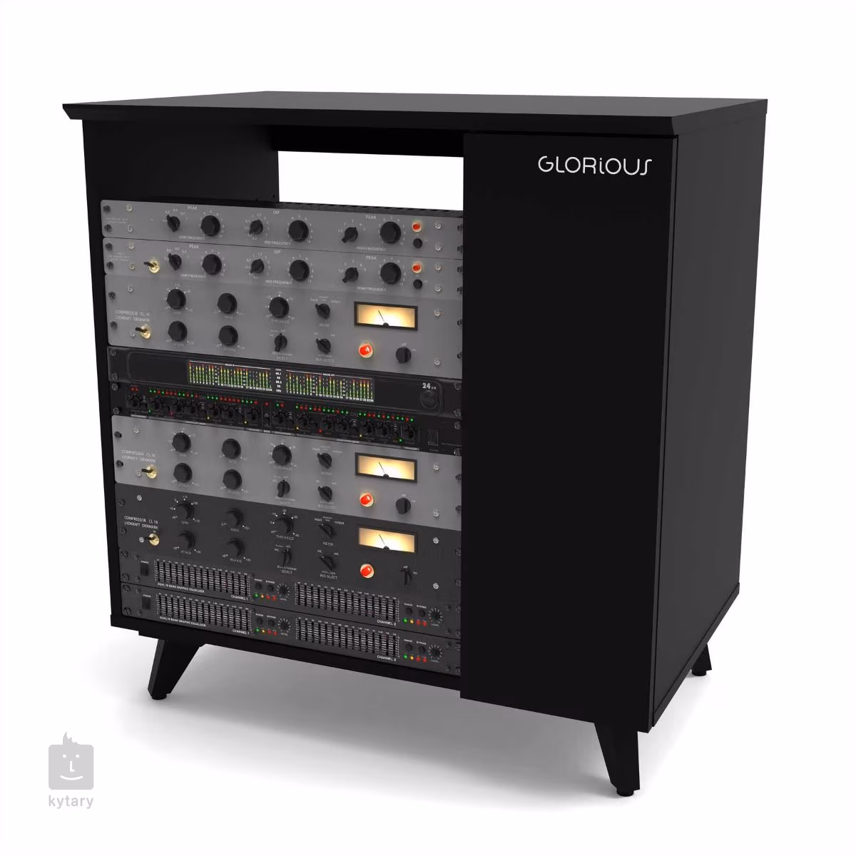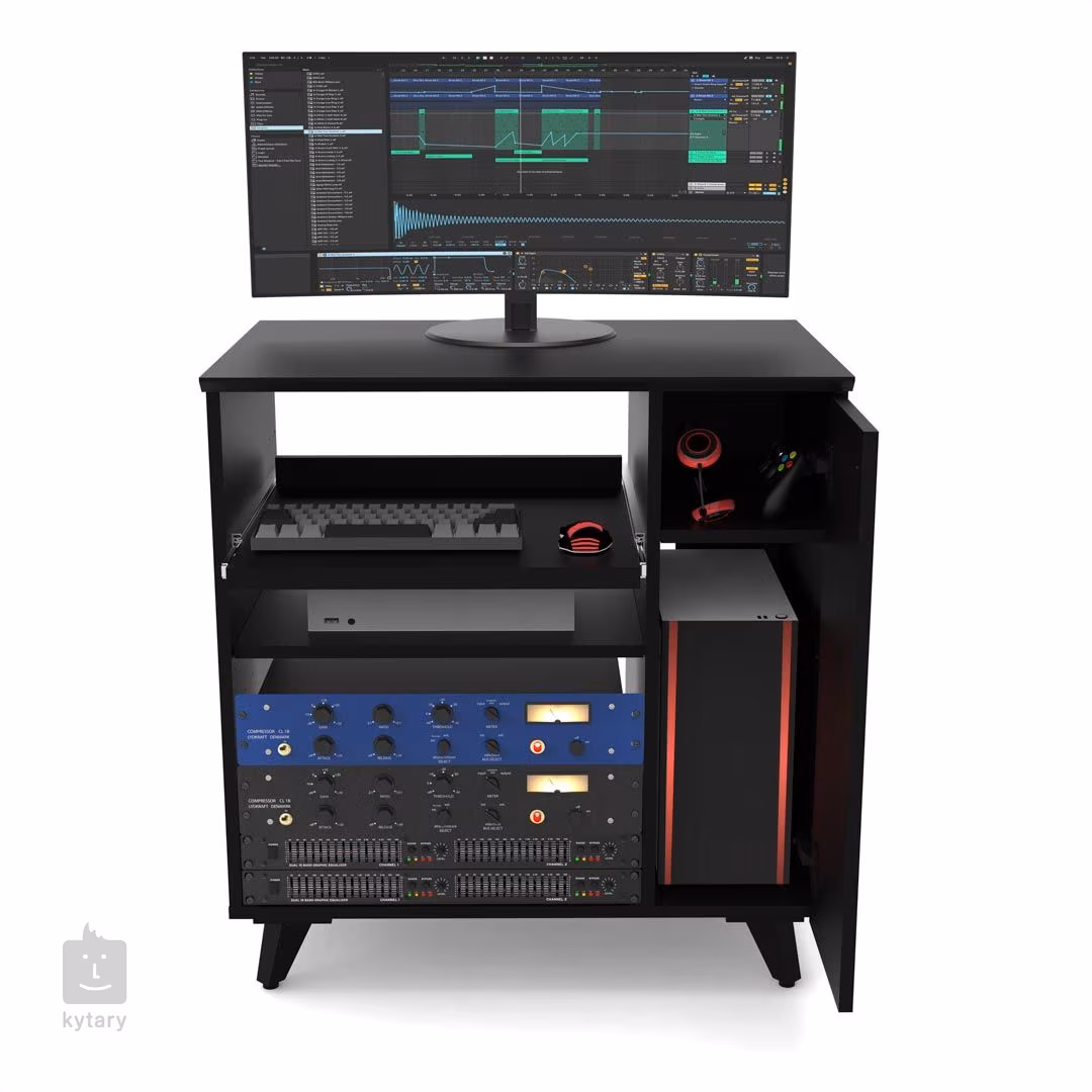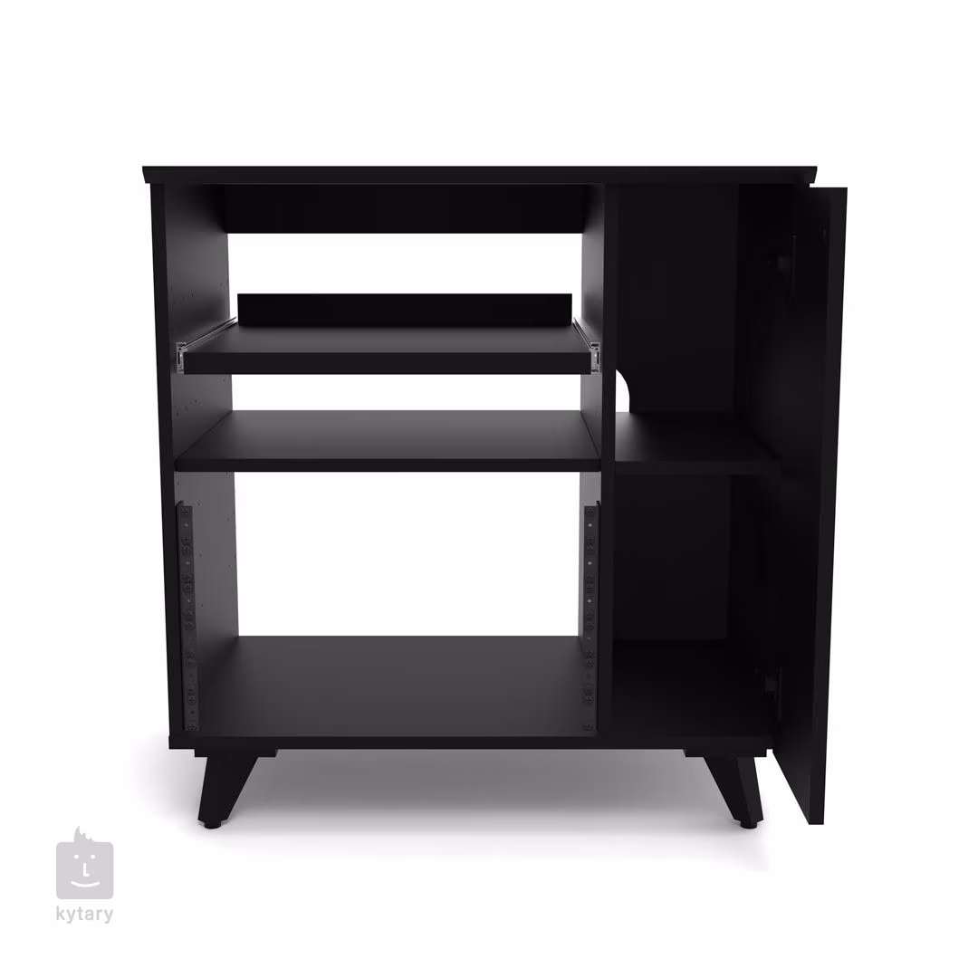 Nie ma dwóch takich samych studiów nagraniowych, dlatego Glorious Modular Side Rack został zaprojektowany z myślą o maksymalnej elastyczności. Ten stylowy mebel studyjny to zmienny stojak podzielony na dwie główne sekcje, które doskonale uzupełnią gamę Soud Desk i Wokbench. Większa (lewa) sekcja składa się z przestrzeni rack (do 12U), która może być częściowo wykorzystana do zainstalowania dwóch półek, z których jedna jest wyposażona w poręczny mechanizm wysuwania. Obie części można regulować na wysokość lub wybrać tylko jedną (lub żadną), nadając w ten sposób priorytet przestrzeni specjalnie dla jednostek rack. Sposób zaprojektowania układu bezpośrednio determinuje możliwości rozmieszczenia sprzętu, przy czym stała półka może być używana do sprzętu, do którego nie potrzebujesz stałego dostępu, podczas gdy wysuwana podkładka może być używana do kontrolerów, automatów perkusyjnych, klawiatur, a nawet gramofonu. Po prawej stronie komody znajduje się węższa komora zamykana drzwiczkami, która przeznaczona jest do przechowywania płyt LP lub umieszczenia komputera. Mniejsza półka służy do przechowywania akcesoriów (np. słuchawek). Górna płyta jest wtedy dostępna dla innych potrzeb.