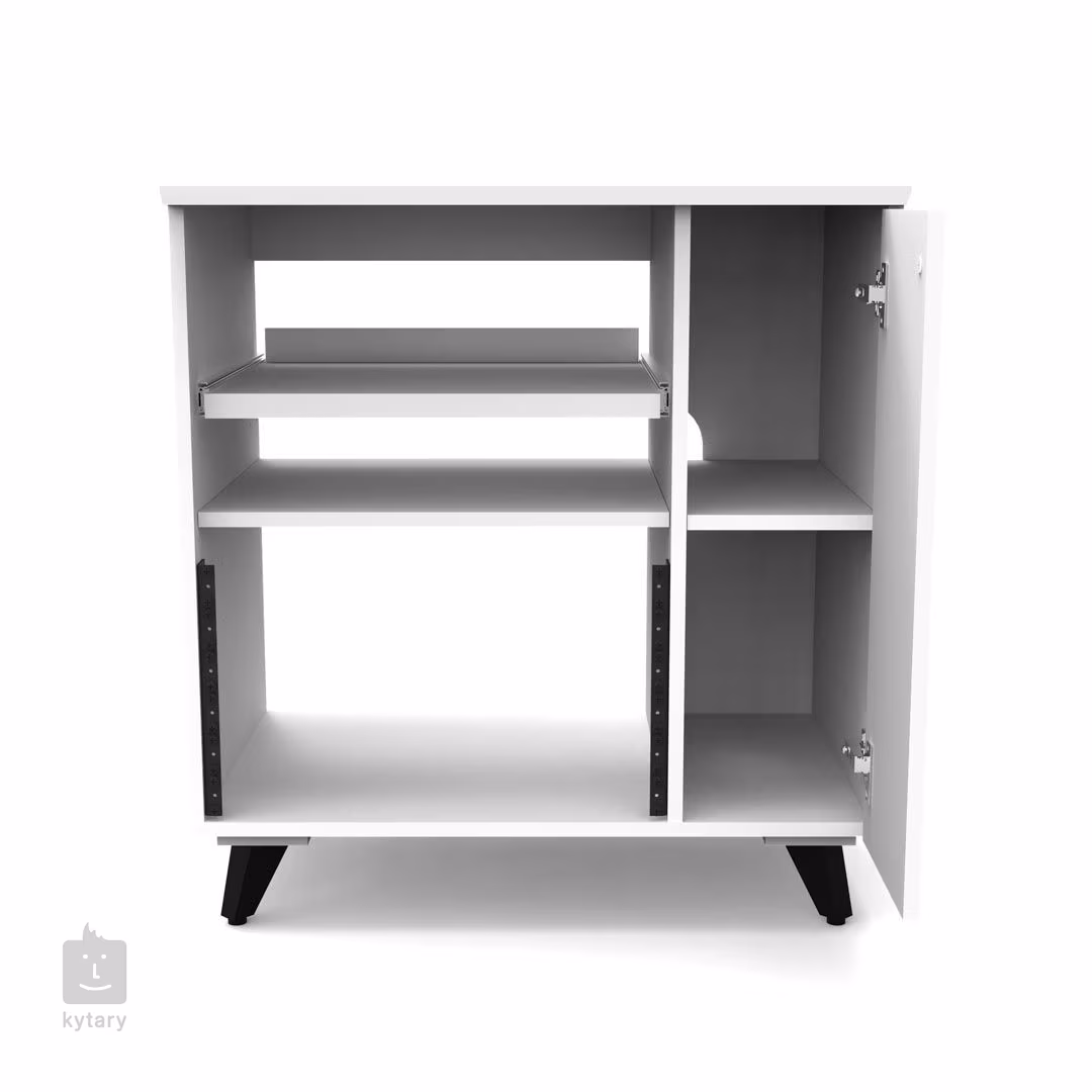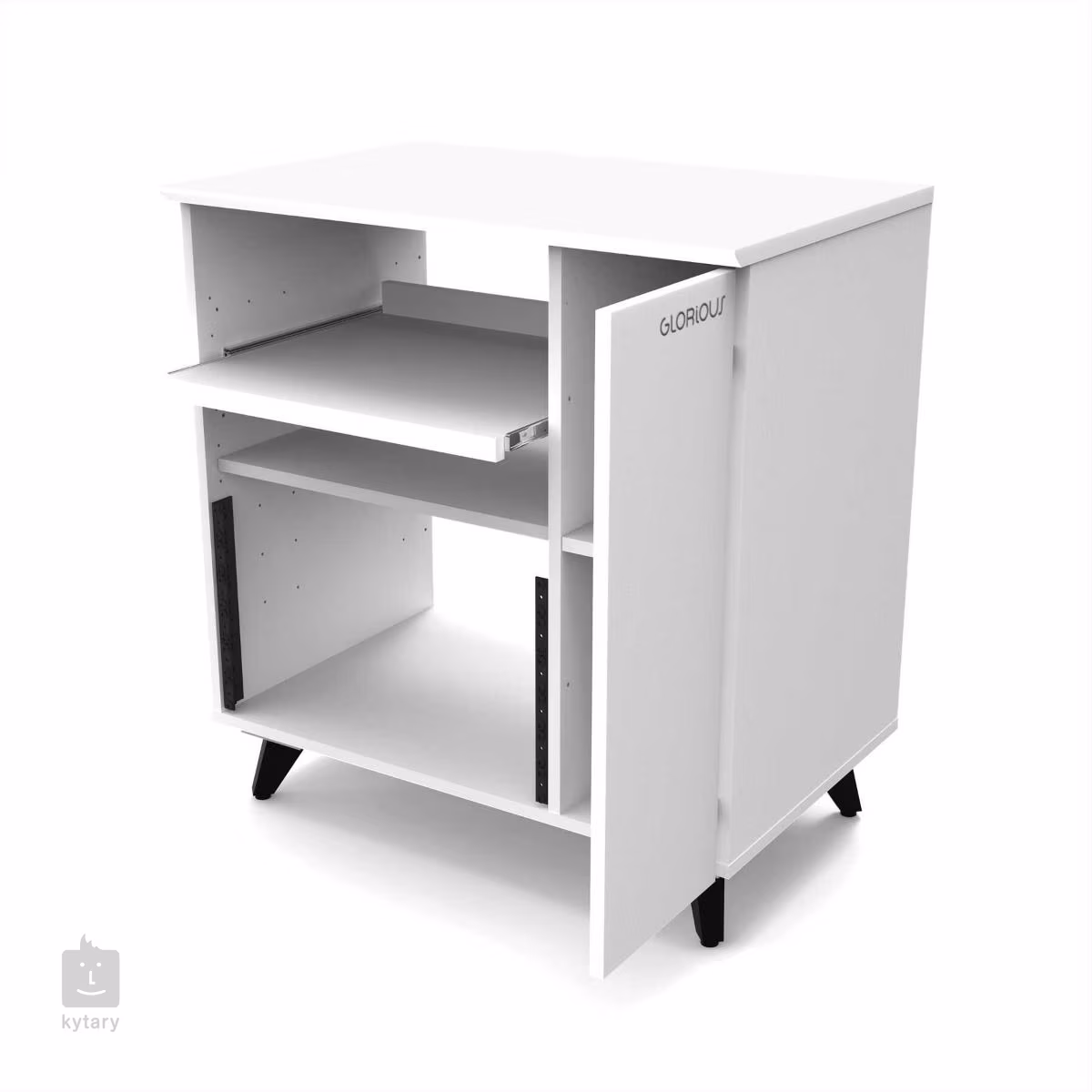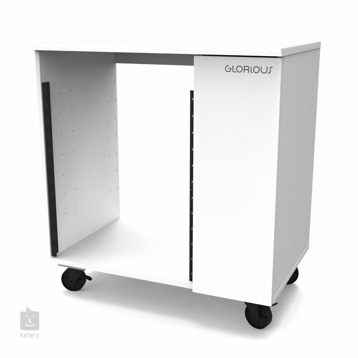 Nie ma dwóch takich samych studiów nagraniowych, dlatego Glorious Modular Side Rack został zaprojektowany z myślą o maksymalnej elastyczności. Ten stylowy mebel studyjny to zmienny stojak podzielony na dwie główne sekcje, które doskonale uzupełnią gamę Soud Desk i Wokbench. Większa (lewa) sekcja składa się z przestrzeni rack (do 12U), która może być częściowo wykorzystana do zainstalowania dwóch półek, z których jedna jest wyposażona w poręczny mechanizm wysuwania. Obie części mogą być regulowane na wysokość lub można wybrać tylko jedną (lub żadną), aby nadać priorytet przestrzeni dla jednostek rack. Sposób zaprojektowania układu bezpośrednio determinuje możliwości rozmieszczenia sprzętu, przy czym stała półka może być używana do sprzętu, do którego nie potrzebujesz stałego dostępu, podczas gdy wysuwana podkładka może być używana do kontrolerów, automatów perkusyjnych, klawiatur, a nawet gramofonu. Po prawej stronie komody znajduje się węższa komora zamykana drzwiczkami, która przeznaczona jest do przechowywania płyt LP lub umieszczenia komputera. Mniejsza półka służy do przechowywania akcesoriów (np. słuchawek). Górna płyta jest wtedy dostępna dla innych potrzeb.