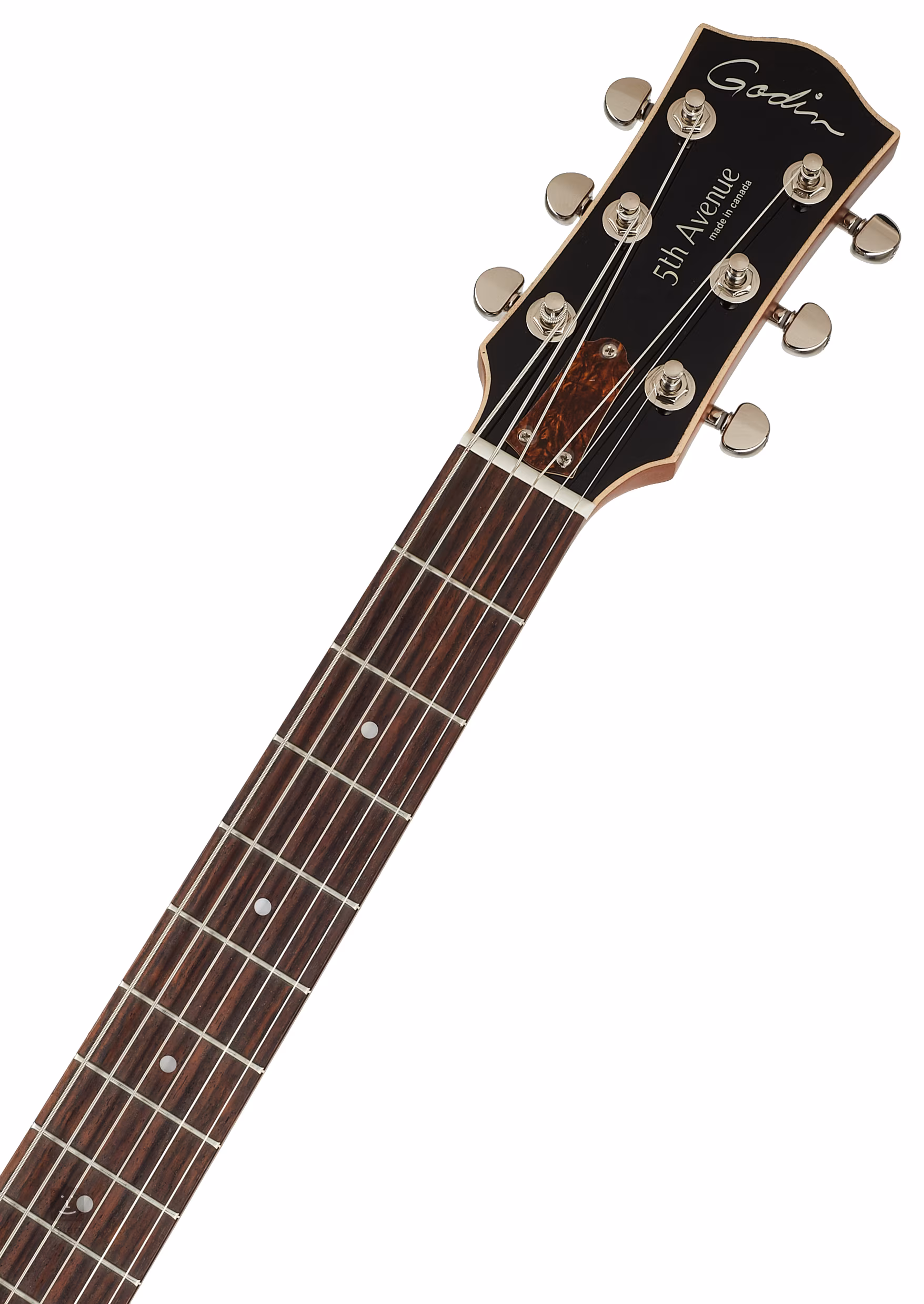 5th Avenue to gitary typu archtop, które przeniosą Cię do lat 50-tych, kiedy te instrumenty rządziły w muzyce. Łączy w sobie klasyczne brzmienie z komfortem gry, który mogą zaoferować tylko instrumenty zbudowane z wykorzystaniem najnowszych technologii. I jak to zwykle bywa w przypadku gitar Godin, precyzja wykonania, wysokiej jakości materiały i świetne brzmienie to oczywistość.