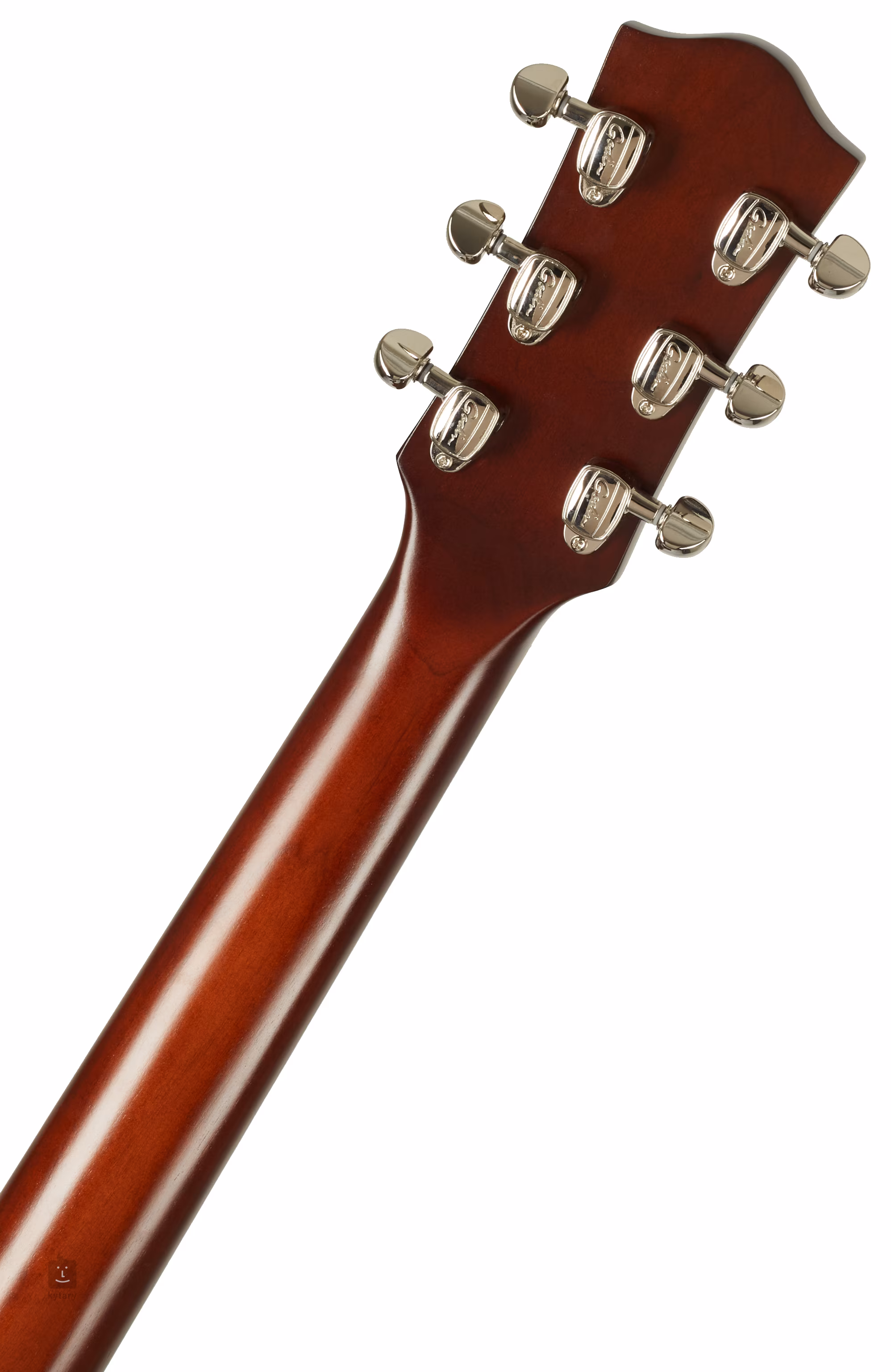 Korpus modelu 5th Avenue Uptown T-Armond Havana Burst jest wykonany z warstwowego kanadyjskiego drewna wiśniowego. Do szyjki z klonu srebrzystego przyklejono podstrunnicę z kompozytu Richlite z dwudziestoma progami. Orientację na podstrunnicy ułatwiają znaczniki pozycyjne.