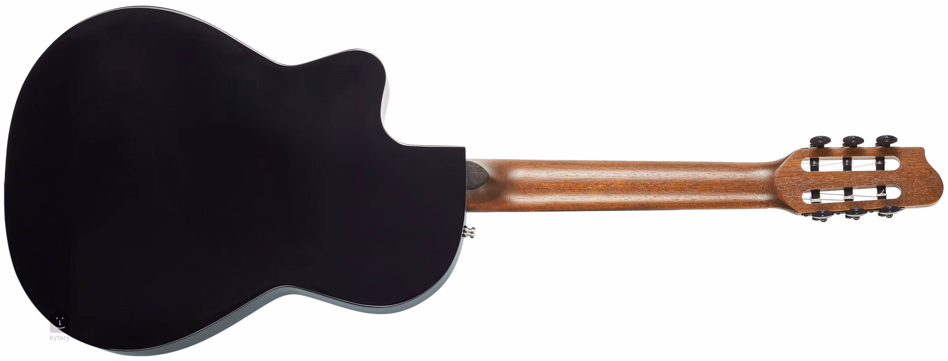 Arena Pro Ltd CW Onyx Black EQ with Bag to półmasywna gitara z litą cedrową płytą rezonansową oraz tyłem i bokami wykonanymi ze sklejki z litej wiśni kanadyjskiej. Do mahoniowej szyjki przyklejona jest hebanowa podstrunnica z dziewiętnastoma progami. Głębokie, zaokrąglone wycięcie w dolnej części korpusu ułatwia dobre dopasowanie w górnej części podstrunnicy.