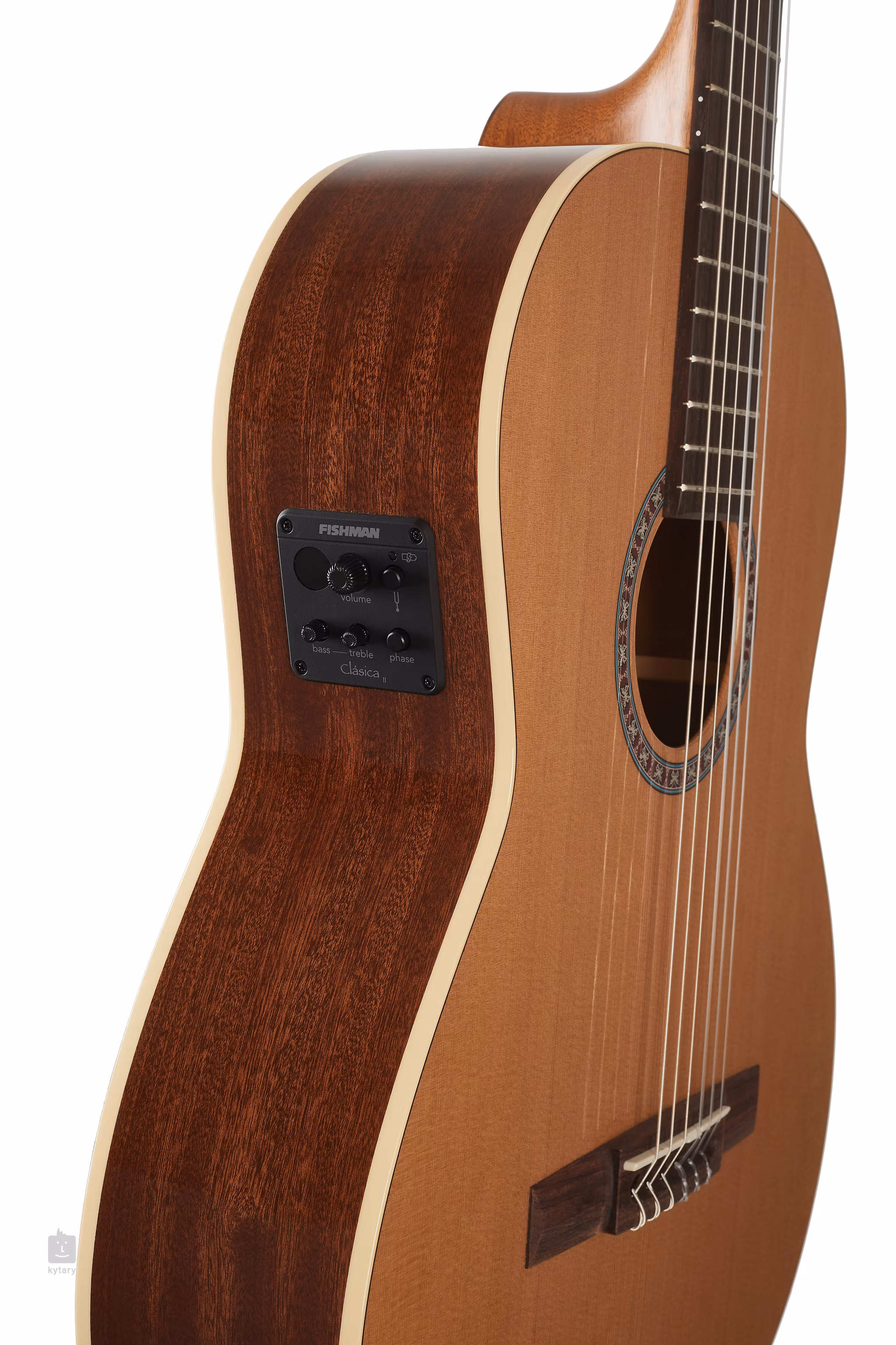 Opcje wzmocnienia dźwięku obejmują aktywną elektronikę Fishman Clásica II z dwupasmowym EQ, wbudowanym tunerem i kontrolą Phase do tłumienia sprzężeń przy wyższych głośnościach.