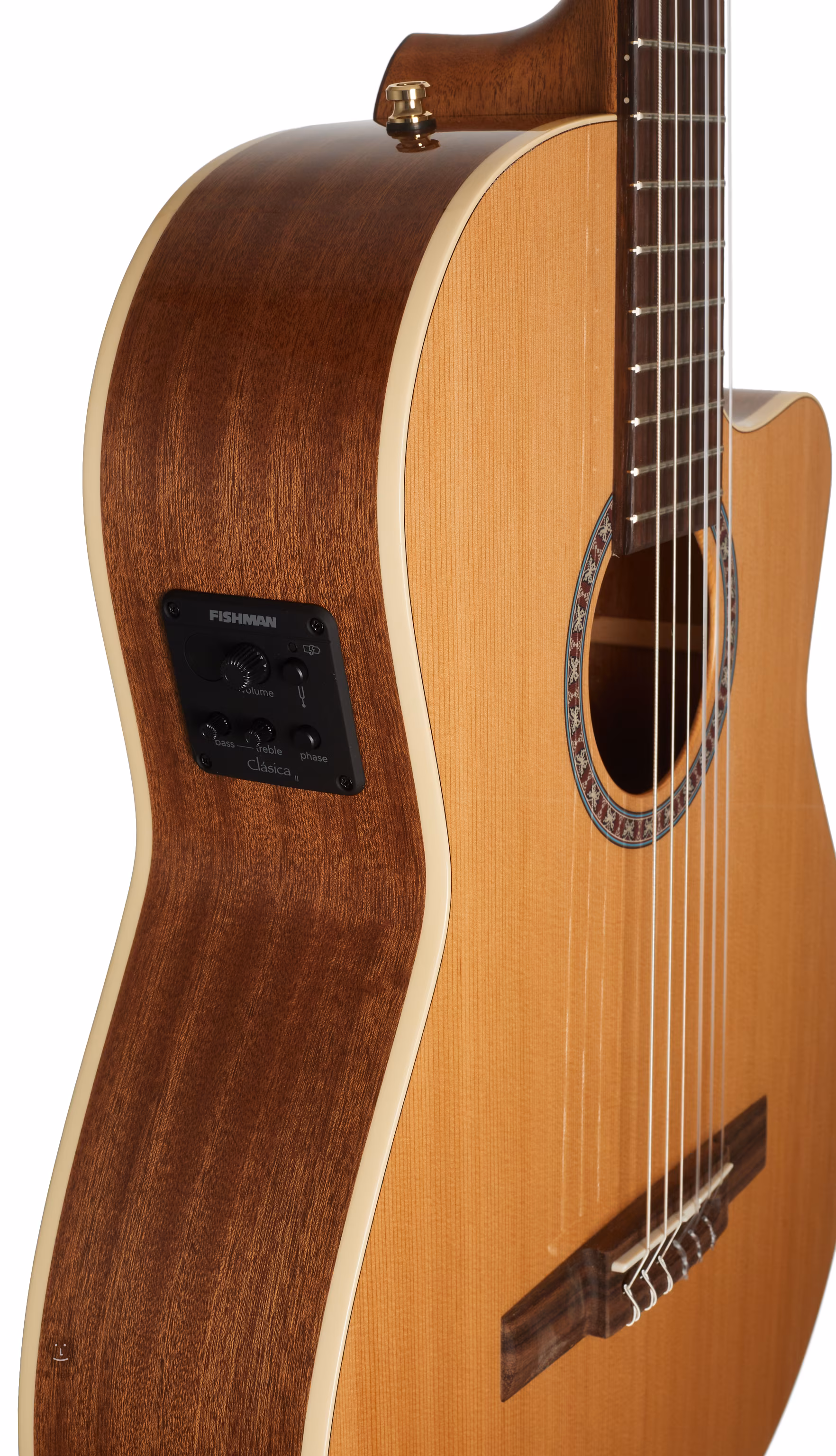 Opcje wzmocnienia dźwięku obejmują aktywną elektronikę Fishman Clásica II z dwupasmowym EQ, wbudowanym tunerem i kontrolą Phase do tłumienia sprzężeń przy wyższych głośnościach.