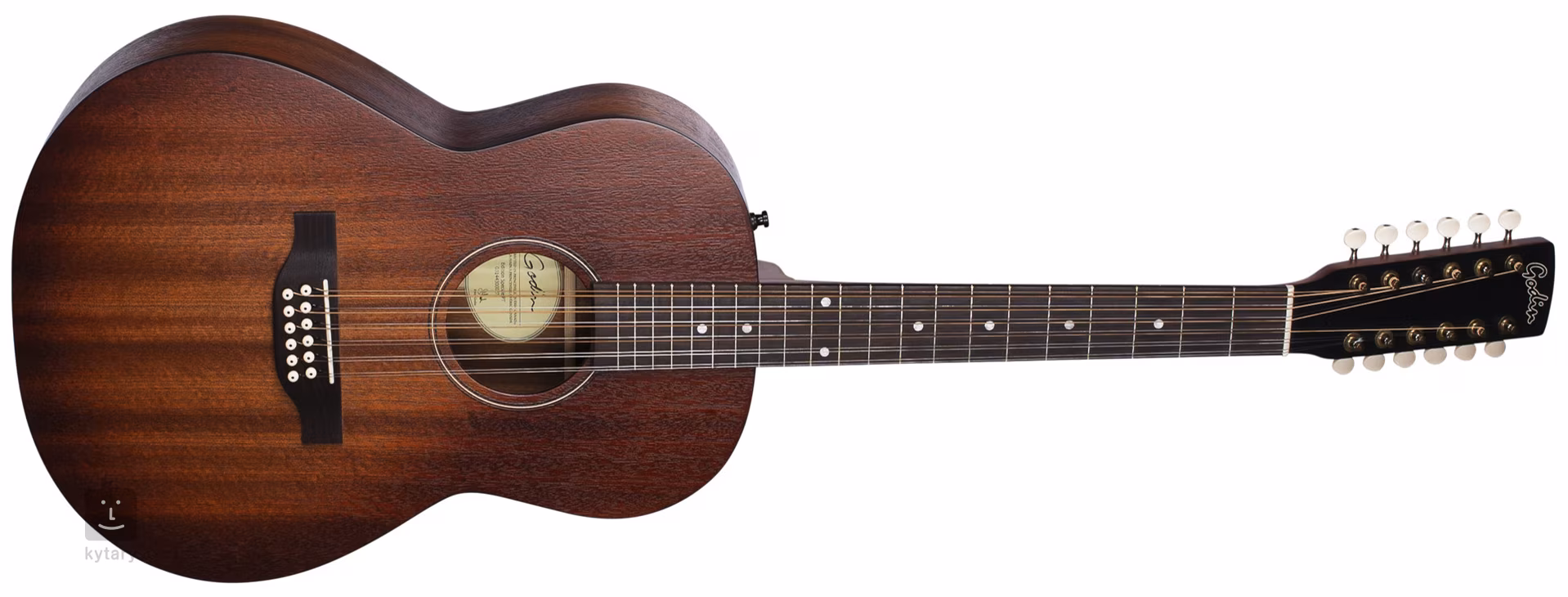Dwunastostrunowa gitara elektro-akustyczna Mahogany Folk 12 Rustic Burst od kanadyjskiej firmy Godin oferuje bardziej kompaktowy korpus w rozmiarze "Folk" i piękne, pełne, przestrzenne brzmienie dwunastostrunowej gitary akustycznej, która jest integralną częścią wielu słynnych nagrań. Lity mahoniowy korpus nadaje instrumentowi ciepłe brzmienie. Rysunek mahoniu jest podkreślony przez półbłyszczące wykończenie Rustic Burst. Palisandrowa podstrunnica wyposażona w dwadzieścia jeden progów jest przyklejona do szyjki z klonu o srebrnych liściach. Pozycjonowanie kropek na podstrunnicy ułatwia orientację.
