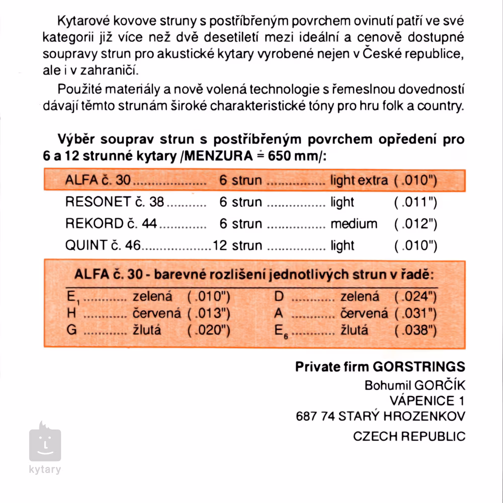 Struny do gitary akustycznej Alfa Folk od czeskiego producenta Gorstrings oferują bardzo specyficzne brzmienie, które idealnie nadaje się do gatunków takich jak folk czy country. Ich stalowy rdzeń jest nawinięty niezwykłą posrebrzaną miedzią, co nadaje im wyjątkową ostrość i klarowność. Jeśli szukasz strun do występów przy ognisku lub country, ten zestaw może być dla Ciebie właściwym wyborem. Struny zostały wykonane z najwyższej jakości materiałów i przeszły przez ręce najlepszych czeskich rzemieślników. Podaruj swojej gitarze to, co najlepsze z Gorstrings!