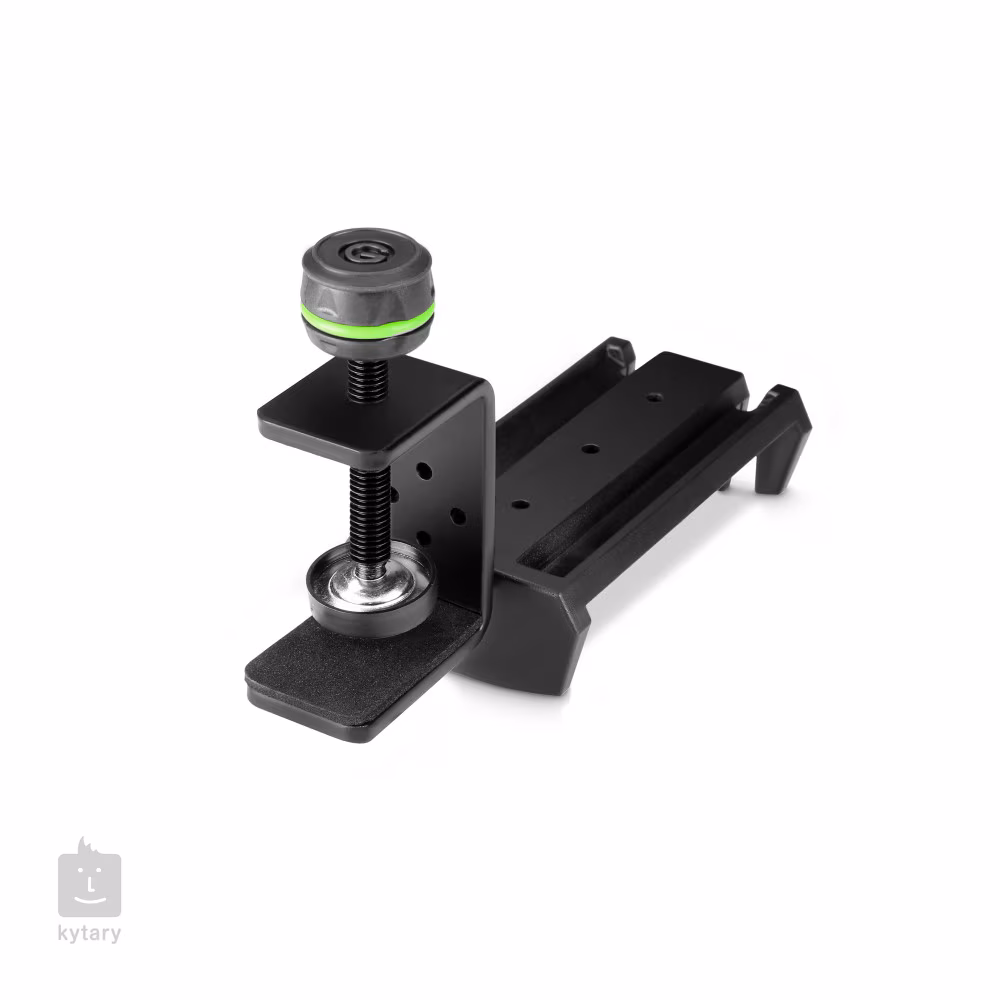 Studyjny uchwyt na słuchawki z gwintowaną śrubą, odpowiedni dla domowych i profesjonalnych studiów nagrań lub studiów nadawczych. Uchwyt mocuje się do blatu stołu o średnicy od 5 do 45 mm, a także zawiera specjalne rowki na słuchawki In-Ear i doskonałe zarządzanie kablami.