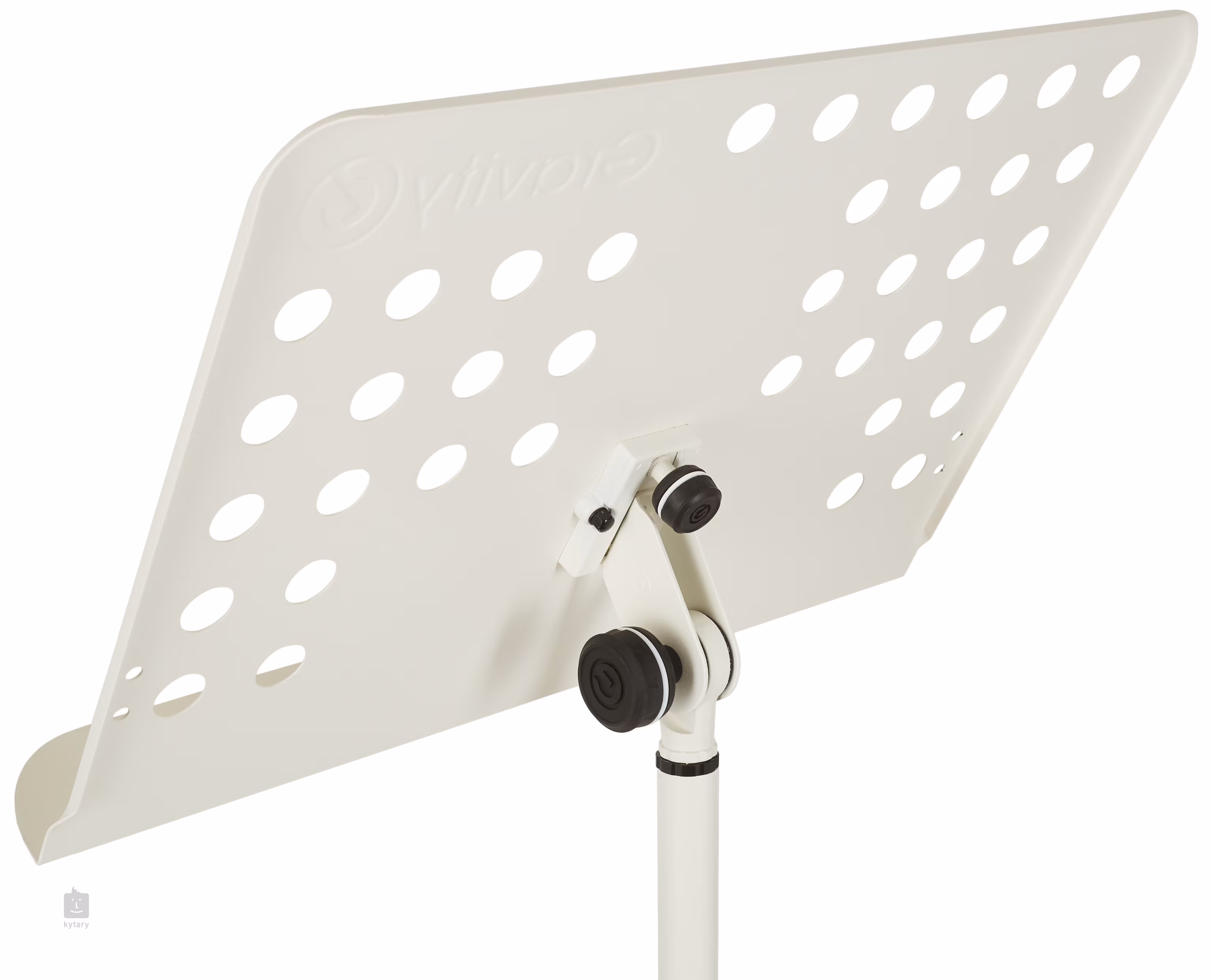 Stojak na nuty Gravity o stabilnej, solidnej konstrukcji z podstawą na trójnogu i perforowaną podstawą na nuty o wymiarach 47,5 x 34 cm. Dzięki możliwości regulacji wysokości w zakresie od 66 do 120 cm, zarówno Ty, jak i Twoje dzieci będziecie czerpać korzyści z tego stojaka. Wszystkie ergonomicznie ukształtowane elementy sterujące (zaciski) są wykonane z tworzywa ABS/nylon i pokryte tworzywem termoplastycznym, co zapewnia łatwą, szybką i płynną regulację. Manipulowanie stojakiem to w tym przypadku kwestia kilku sekund, a dodatkowo można się obyć bez żmudnego przykręcania śrub.