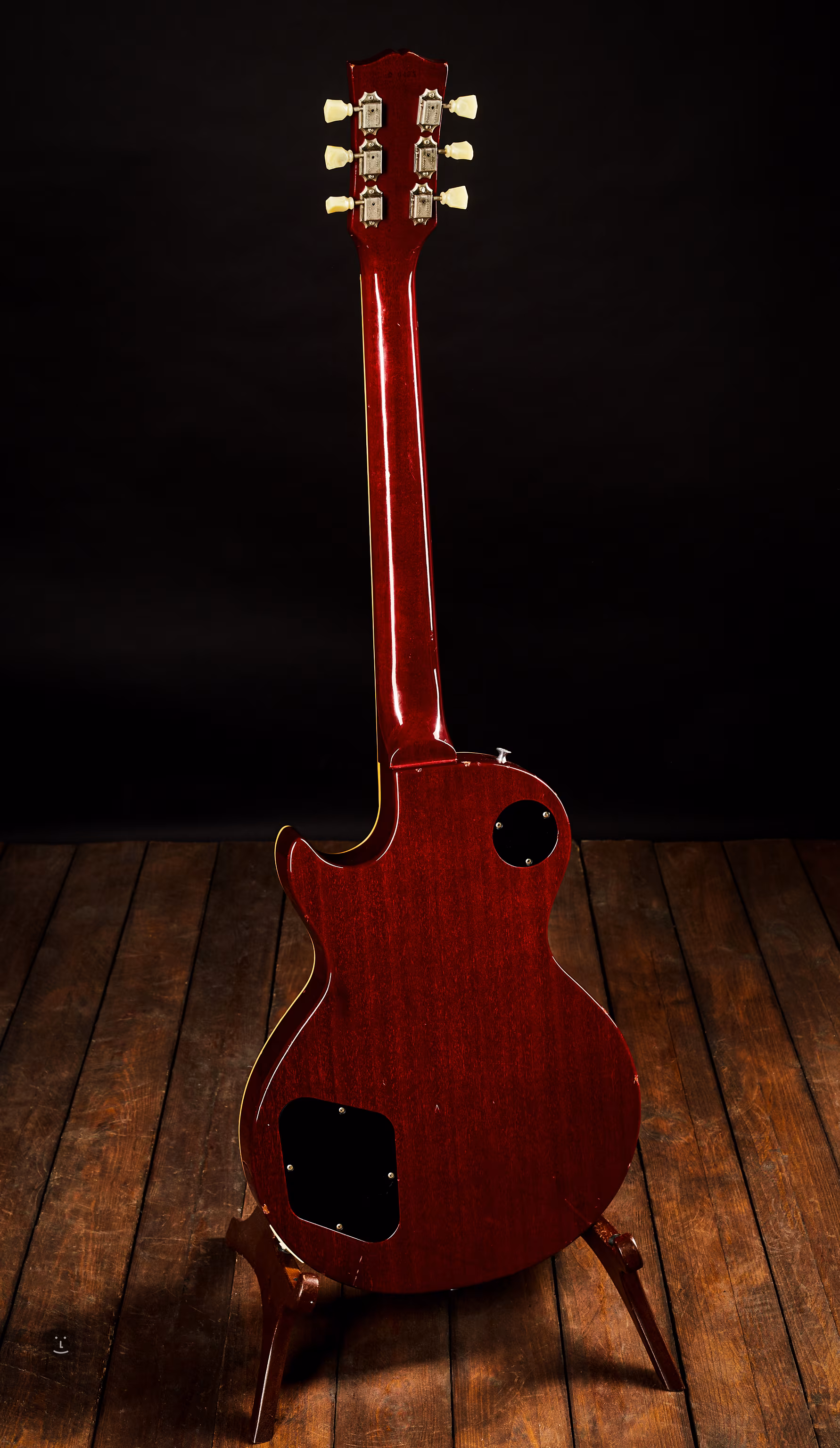 Japońska gitara vintage Les Paul z 1980 roku. Szczere drewno, wszystko na tym instrumencie jest oryginalne, elektronika jest nienaruszona, progi w doskonałym stanie. Brakuje tylko pickguardu i jest kilka drobnych wgnieceń na krawędziach korpusu i tyłu.
