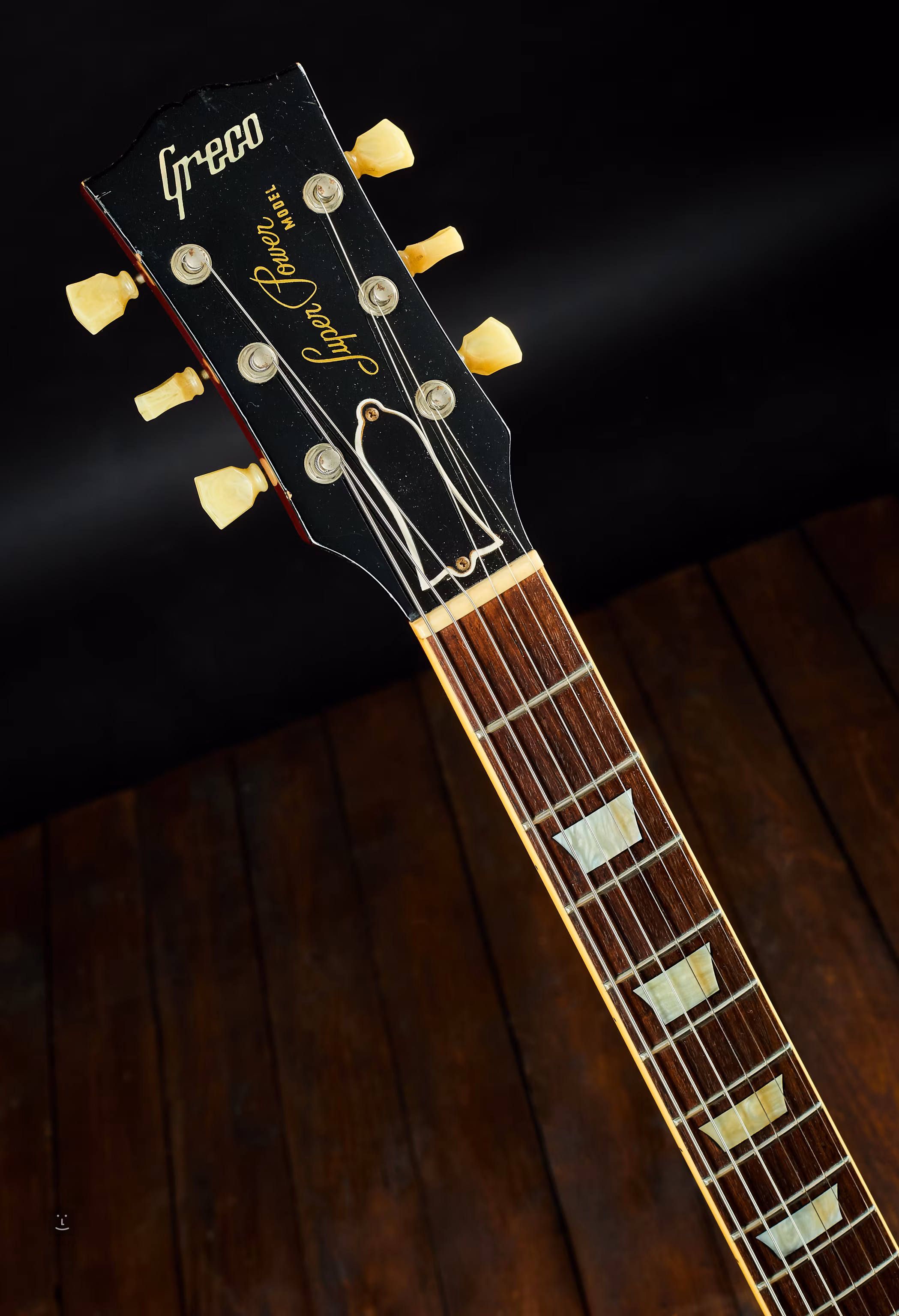 Gitara jest w oryginalnym stanie, elektronika jest nienaruszona i jest okablowana 2 oryginalnymi humbuckerami Greco U-1000. Jest to oczywiście używany przedmiot.