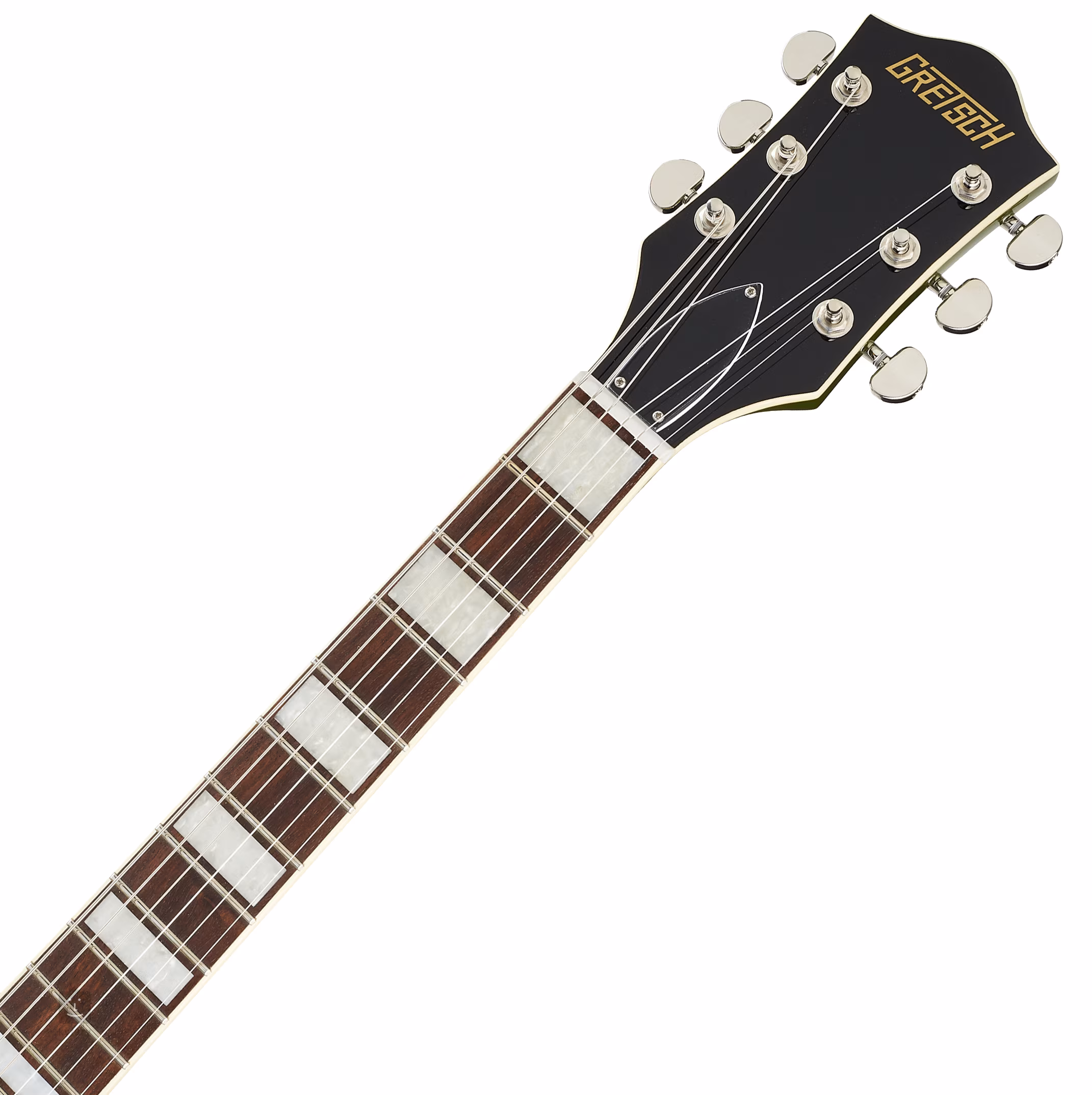 Precyzyjne strojenie jest zapewnione dzięki przełożeniu strun przez syntetyczną kość zerowego progu w firmowych automatach stroikowych Die-Cast oraz główce Adjusto-Matic. Licencjonowane tremolo Bigsby B70 dodaje subtelne efekty dźwiękowe do Twojej gry. Klasyczny, przyjemny dla oka design gitar Gretsch jest podkreślony przez szereg stylowych cech - od łukowatej konstrukcji korpusu z rozszerzonymi otworami F dla lepszej projekcji akustycznej, eleganckiego binding'u z subtelną nutą patyny (Aged White) i czarno-białego pickguarda, potencjometrów w stylu vintage, niklowanego osprzętu po trójwarstwowy pickguard z imitacji żółwiej skorupy.