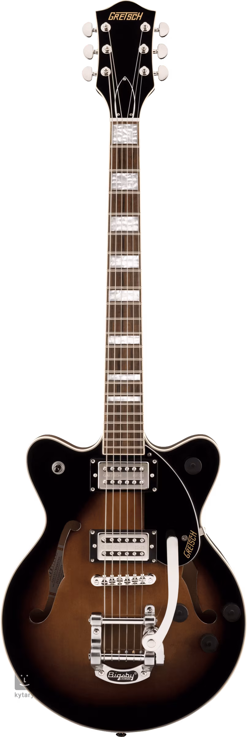 Struny są zakotwiczone na podstrunnicy z imitacji kości w firmowych maszynkach do strojenia Die-Cast oraz na strunniku Adjusto-Matic osadzonym na drewnianej podstawie w licencjonowanym tremolo Bigsby B50. Klasyczny, przyjemny dla oka design gitar Gretsch jest podkreślony przez szereg cech stylistycznych - od łukowatej konstrukcji korpusu z rozszerzonymi otworami F dla lepszej projekcji akustycznej, przez elegancki binding z subtelną nutą patyny (Aged White) i czarno-biały pickguard, potencjometry w stylu vintage, niklowe okucia, po czarny pickguard.