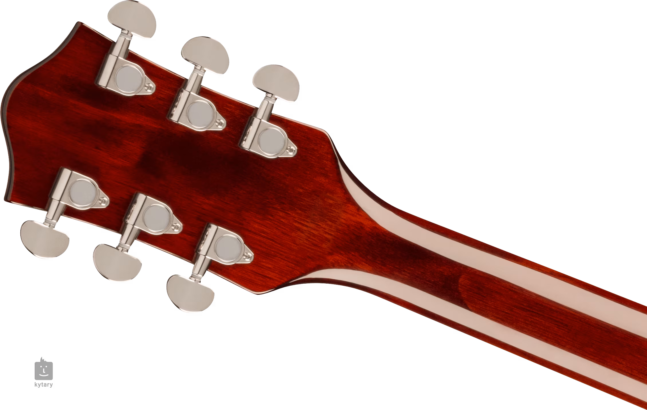 Struny są zakotwiczone za pomocą kostnego progu zerowego w odlewanych maszynkach do strojenia firmy i za pomocą strunnika Adjusto-Matic w licencjonowanym tremolo Bigsby B50. Klasyczny, przyjemny dla oka design gitar Gretsch jest podkreślony przez szereg cech stylistycznych - od łukowatej konstrukcji korpusu z otworami F, eleganckiego bindingu z subtelną nutą patyny (Aged White), potencjometrów w stylu "radiowym", niklowego osprzętu po jednowarstwowy kremowy pickguard ze złotym logo Gretsch.