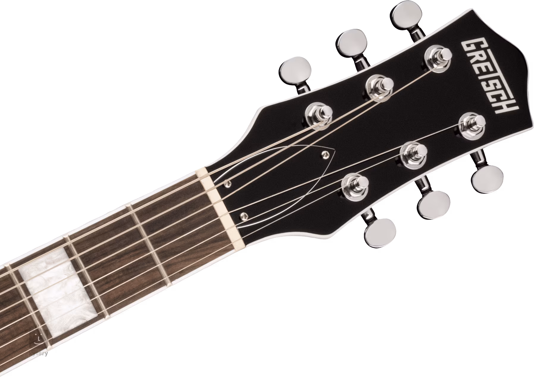 Struny są zakotwiczone w podstrunnicy z syntetycznej kości, w mechanice Die-Cast oraz regulowanej strunnicy i strunociągach Adjusto-Matic. Stylowy wygląd instrumentu podkreślają białe wykończenia korpusu, uzupełnione czarno-białą osłoną, chromowanym osprzętem i czarną osłoną z pleksi ze srebrnym logo firmy Gretsch.
