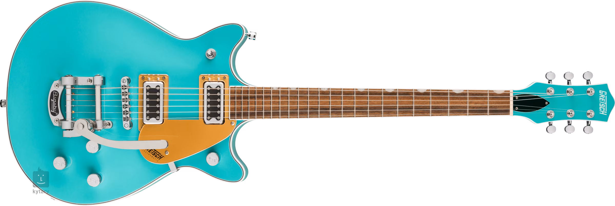 Struny są zamontowane w odlewanych maszynkach do strojenia firmy za pośrednictwem podstrunnicy ze sztucznej kości oraz w licencjonowanym tremolo Bigsby B50 za pośrednictwem regulowanego strunnika Adjusto-Matic. Stylowy design instrumentu podkreślają tradycyjne elementy w postaci jasnego korpusu uzupełnionego czarno-białymi liniami, chromowanym osprzętem i pickguardem Golden Plexi z czarnym logo firmy Gretsch.