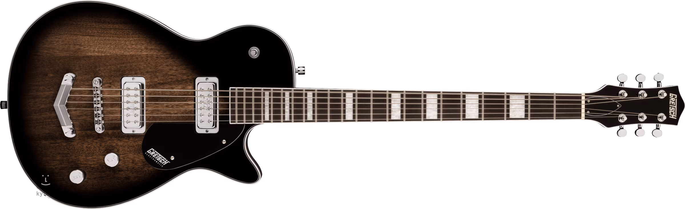 Gitary elektryczne typu Jet, niezależnie od tego, czy są to modele z podstawowej serii Electromatic, czy z wyższej serii Professional, łączy zastosowanie litego korpusu z jednym lub dwoma wycięciami. Są to bardzo wszechstronne instrumenty, które bez problemu można wykorzystać w wielu stylach muzycznych. G5260 to gitara barytonowa w stylu single-cut z serii Electromatic z dłuższą menzurą i strojem od H, czyli o czystą kwartę niżej. Korpus instrumentu jest wykonany z mahoniu. Do przykręcanej szyjki klonowej o profilu Thin U przyklejono podstrunnicę z drewna figowego z dwudziestoma progami rozmiaru Medium Jumbo. Orientację na podstrunnicy ułatwiają przesunięte blokady pozycyjne z imitacji masy perłowej (Pearloid Big Block). Dwa firmowe mini humbuckery zapewniają gitarze wyraźny, artykułowany dźwięk nawet przy większym przesterowaniu i wyraźniejszym podstrojeniu, do czego zachęca dłuższy gryf (skala 756 mm). Do regulacji brzmienia służą potencjometry głośności, tonów i trzypozycyjny przełącznik przetworników. Struny są zamocowane w firmowych mechanizmach die-cast, regulowanym mostku Adjusto-Matic i strunociągu Gretsch V Stoptail. Stylowy wygląd instrumentu podkreślają tradycyjne elementy w postaci jasnej obwódki korpusu uzupełnionej czarno-białymi liniami, chromowany osprzęt i czarna płytka Plexi ozdobiona białym logo Gretsch.
