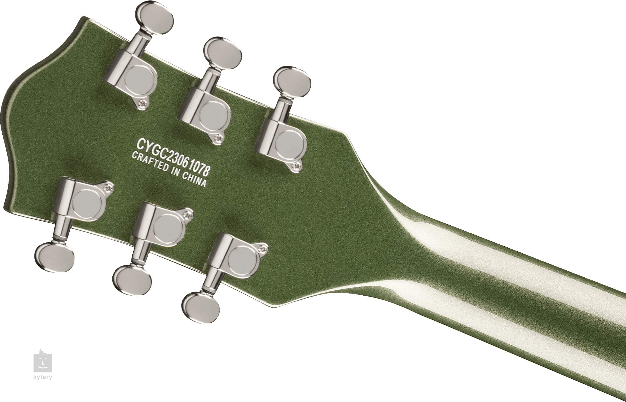 Precyzyjne strojenie gwarantuje bezprogowe mocowanie strun Graphtech NuBone w odlewanych maszynkach do strojenia, regulowany strunnik Adjusto-Matic i podstrunnice. Stylowy design gitary podkreślają tradycyjne elementy w postaci bindingu korpusu w kolorze Aged White, niklowego osprzętu i pickguardu Black Plexi z firmowym logo Gretsch.