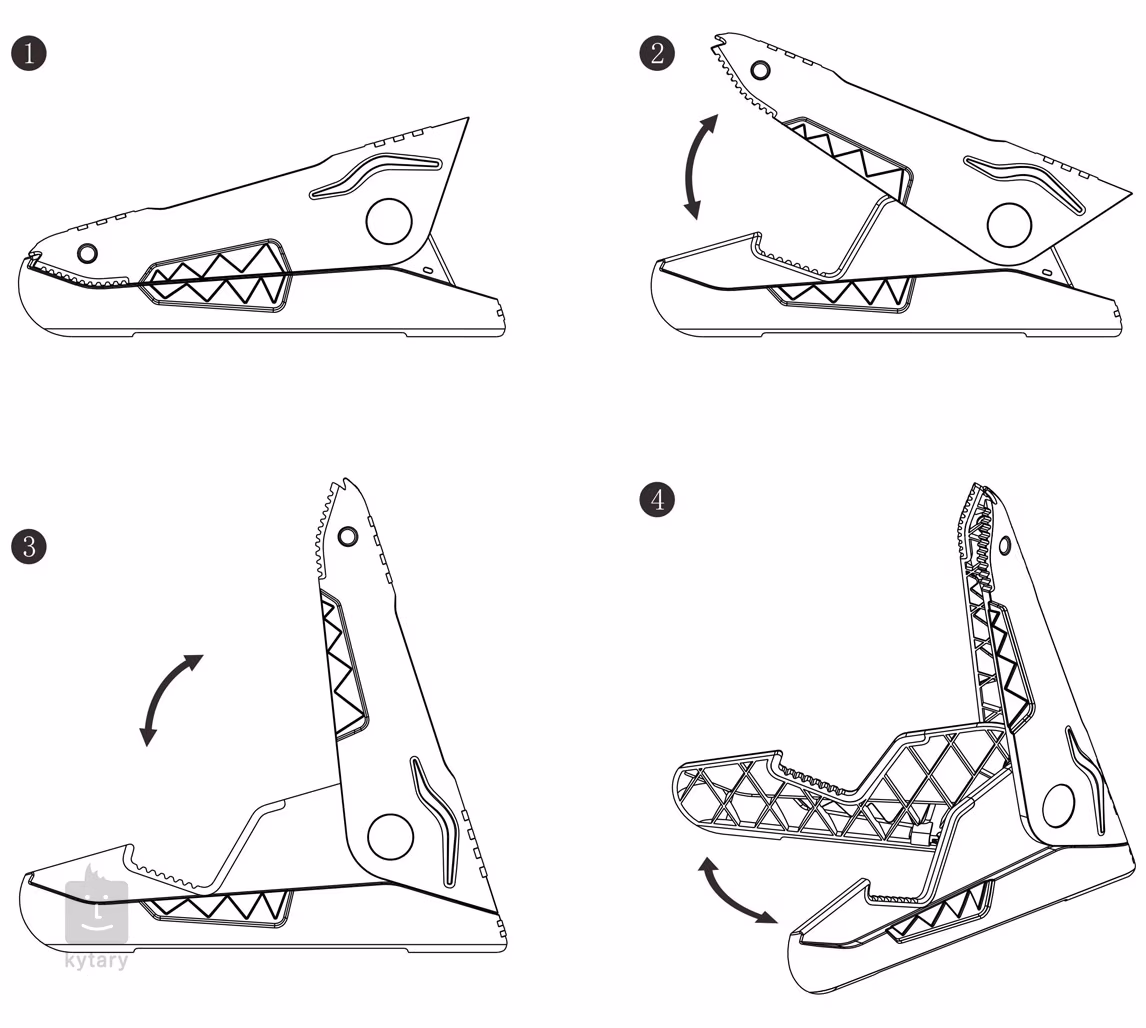 Statyw gitarowy GGS-02 charakteryzuje się nowoczesnym designem w stylu sci-fi i składaną konstrukcją dla wygodnego transportu, która po złożeniu przypomina głowę aligatora. Kompaktowy rozmiar i niewielka waga pozwalają mieć stojak zawsze pod ręką. Stojak wykonany jest z wytrzymałego poliamidu i nadaje się do gitar elektrycznych i basowych.