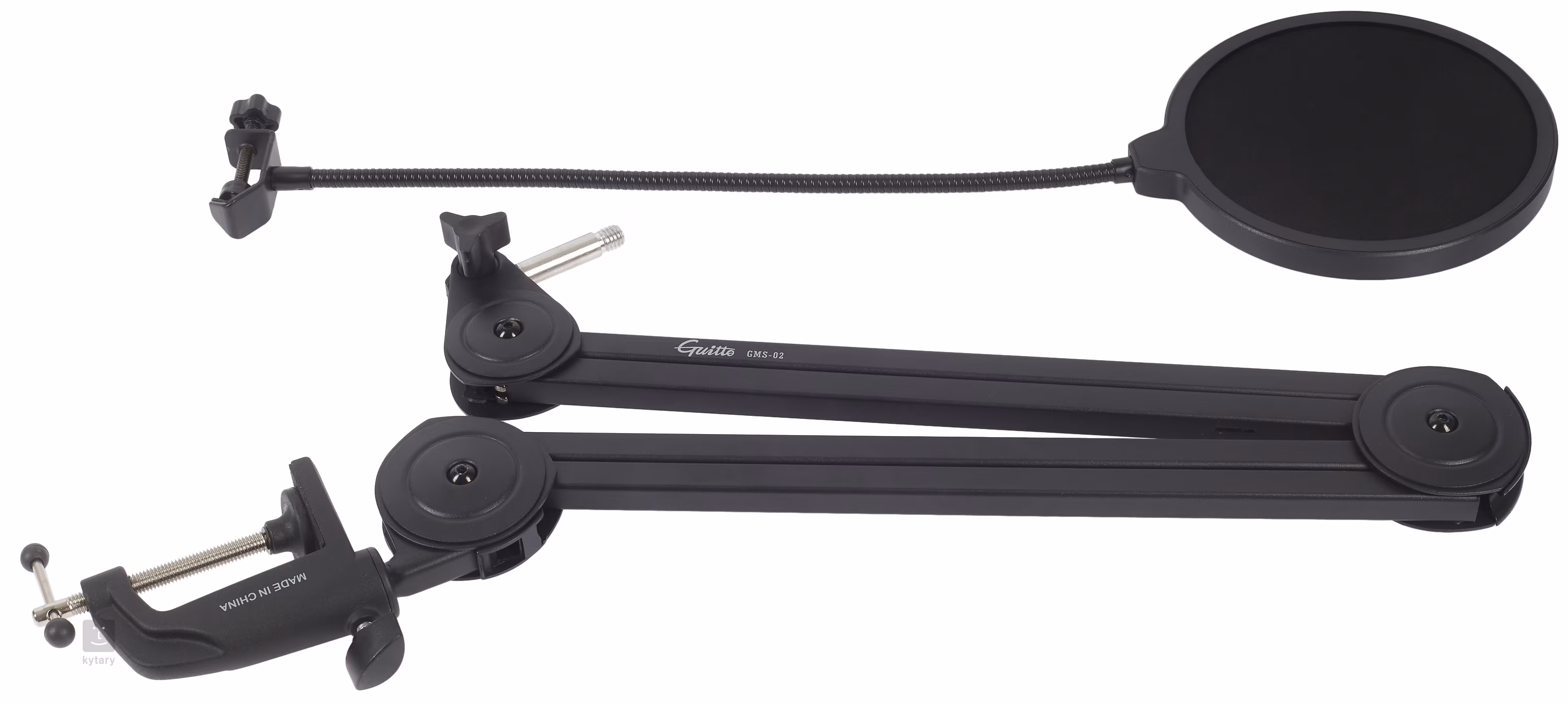 Ramię mikrofonowe GMS-02 do mikrofonów dynamicznych i pojemnościowych oferuje 360-stopniową regulację, łatwe mocowanie do stołu/biurka i stalową konstrukcję. Zestaw zawiera pop filtr, osłonę przeciwwietrzną i uchwyty mikrofonowe.