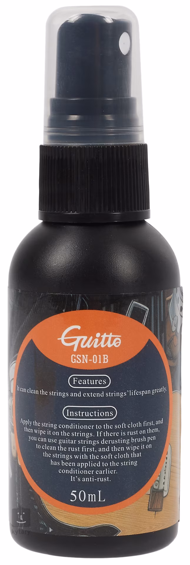 Guitto's String Cleaner and Conditioner zapewnia strunom pełną pielęgnację - produkt ten jednocześnie czyści i smaruje, wydłużając żywotność strun i tworząc gładką powierzchnię, która redukuje irytujące szarpanie podczas zmiany slide'ów i akordów. Nałóż produkt na miękką ściereczkę i delikatnie przetrzyj struny.