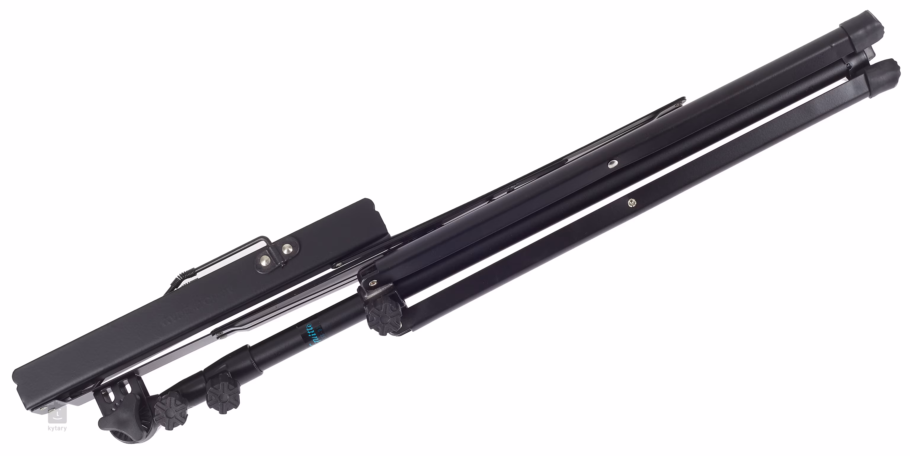 Ten stojak na nuty posiada szeroki zakres regulacji wysokości i nachylenia, dzięki czemu można go używać zarówno w pozycji stojącej, jak i siedzącej. Jego niewielka waga i minimalne wymiary po złożeniu czynią go idealnym towarzyszem podróży. Mimo to zachowuje swoją solidność i stabilność, a jego nośność wynosi do 2,5 kg. Oczywiście nie zabrakło również antypoślizgowych wykończeń na statywie, metalowych uchwytów na kartki oraz ergonomicznych pokręteł dociągających.