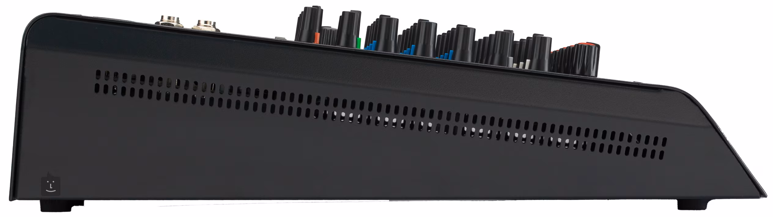 Te osiem kanałów jest podzielonych na pięć banków, każdy z trzypasmowym korektorem, potencjometrem FX/AUX i kontrolą PAN do panoramowania. Wreszcie, oczywiście, każdy bank jest wyposażony w regulator głośności Level, który jest uzupełniony diodą LED Peak wskazującą przesterowanie.