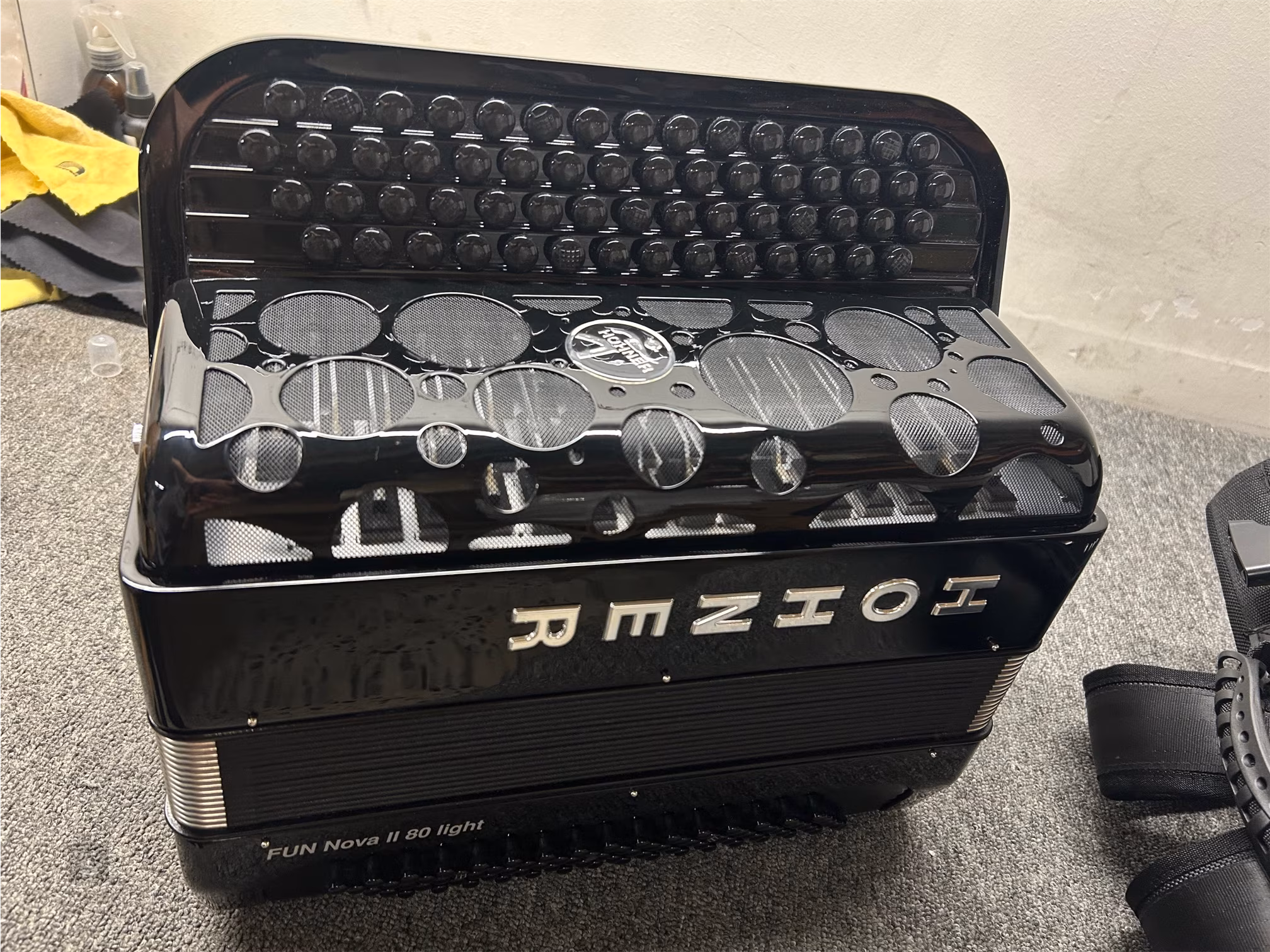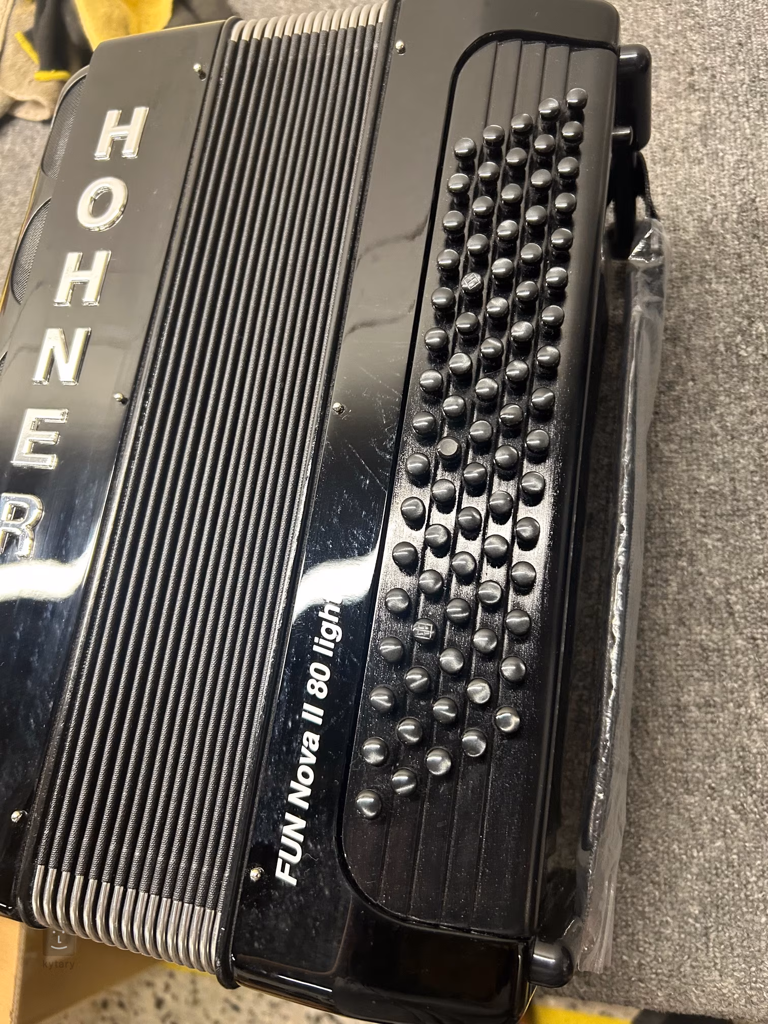 Hohner Fun Nova II 80 light, black celluloid, B-stepped (używane)
