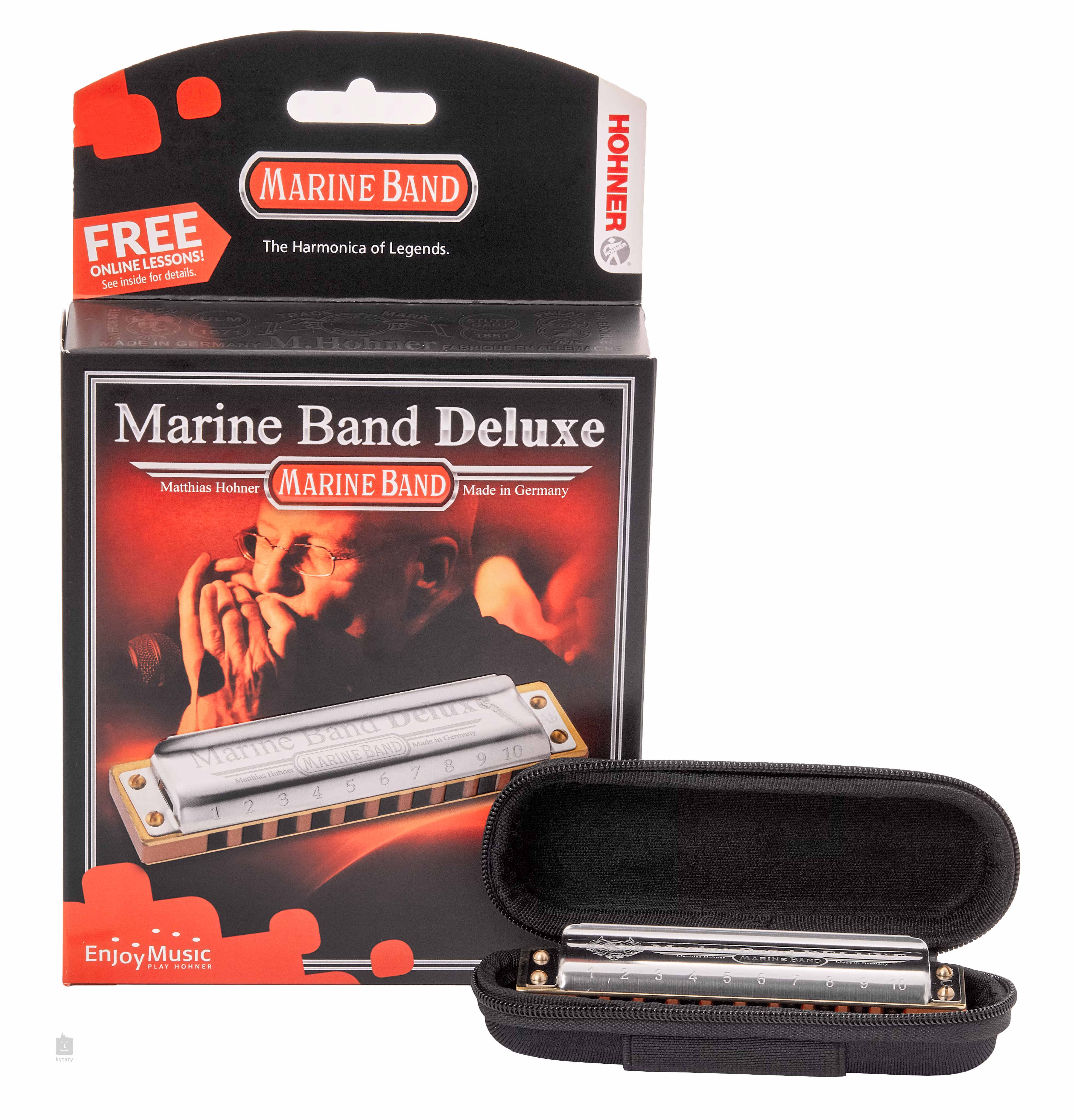 Brzmienie harmonijki Marine Band jest silnie związane z brzmieniem bluesa od jego amerykańskich początków po dzień dzisiejszy. Potrafi intensywnie wyrazić intymne ludzkie uczucia, które są nieodłącznym elementem tego stylu muzyki i życia. Marine Band Deluxe Harmonica posiada te możliwości, jednocześnie otwierając drzwi do XXI wieku, aby sprostać potrzebom współczesnych muzyków. Zmiany konstrukcyjne gwarantują jeszcze większą głośność i szybszą reakcję harmonijki. Jego korpus wykonany jest z potrójnie lakierowanego drewna gruszy, co oznacza, że jest zabezpieczony przed wchłanianiem wilgoci i rozszerzaniem się. Harmonijka posiada również wzmocnione pokrywy ze stali nierdzewnej z bocznymi otworami i otwartym tyłem, zaokrąglone krawędzie dla większego komfortu gry, dwadzieścia mosiężnych klawiszy, mosiężne plastry o grubości 0,9 mm oraz zakres trzech oktaw. W zestawie znajduje się również neoprenowy futerał zapinany na zamek błyskawiczny, który chroni harmonijkę przed kurzem i pozwala na odprowadzanie wilgoci.