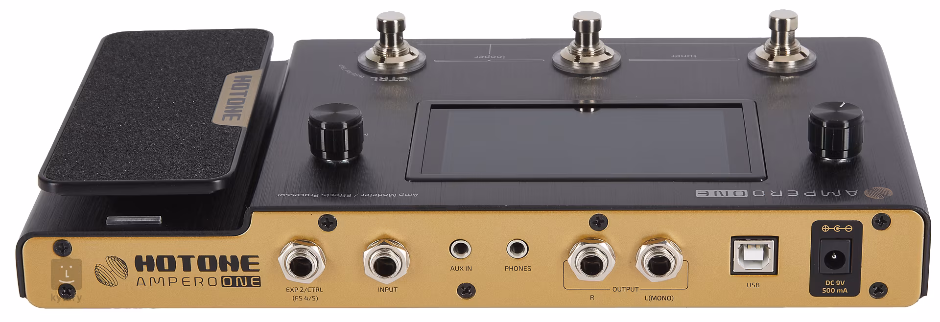 Ampero One to bardziej kompaktowy multiefekt gitarowy azjatyckiej marki Hotone, który z łatwością może zastąpić cały zestaw gitarowy. Oferuje on 242 efekty gitarowe z bazy XTOMP (64 modulacje instrumentów, 60 symulacji kolumn, ponad 100 brzmień znanych efektów pedałowych, oryginalne projekty Hotone, symulacje brzmień gitar akustycznych oraz symulacje i ustawienia mikrofonów), 198 presetów (99 fabrycznych, 99 presetów użytkownika), wbudowany automat perkusyjny ze 100 wzorami rytmicznymi, looper ze 100-sekundowym czasem nagrywania, zintegrowany pedał ekspresji i port USB do aktualizacji oprogramowania sprzętowego oraz nagrywania/edycji efektów i podczerwieni w bezpłatnym oprogramowaniu Mac/PC.