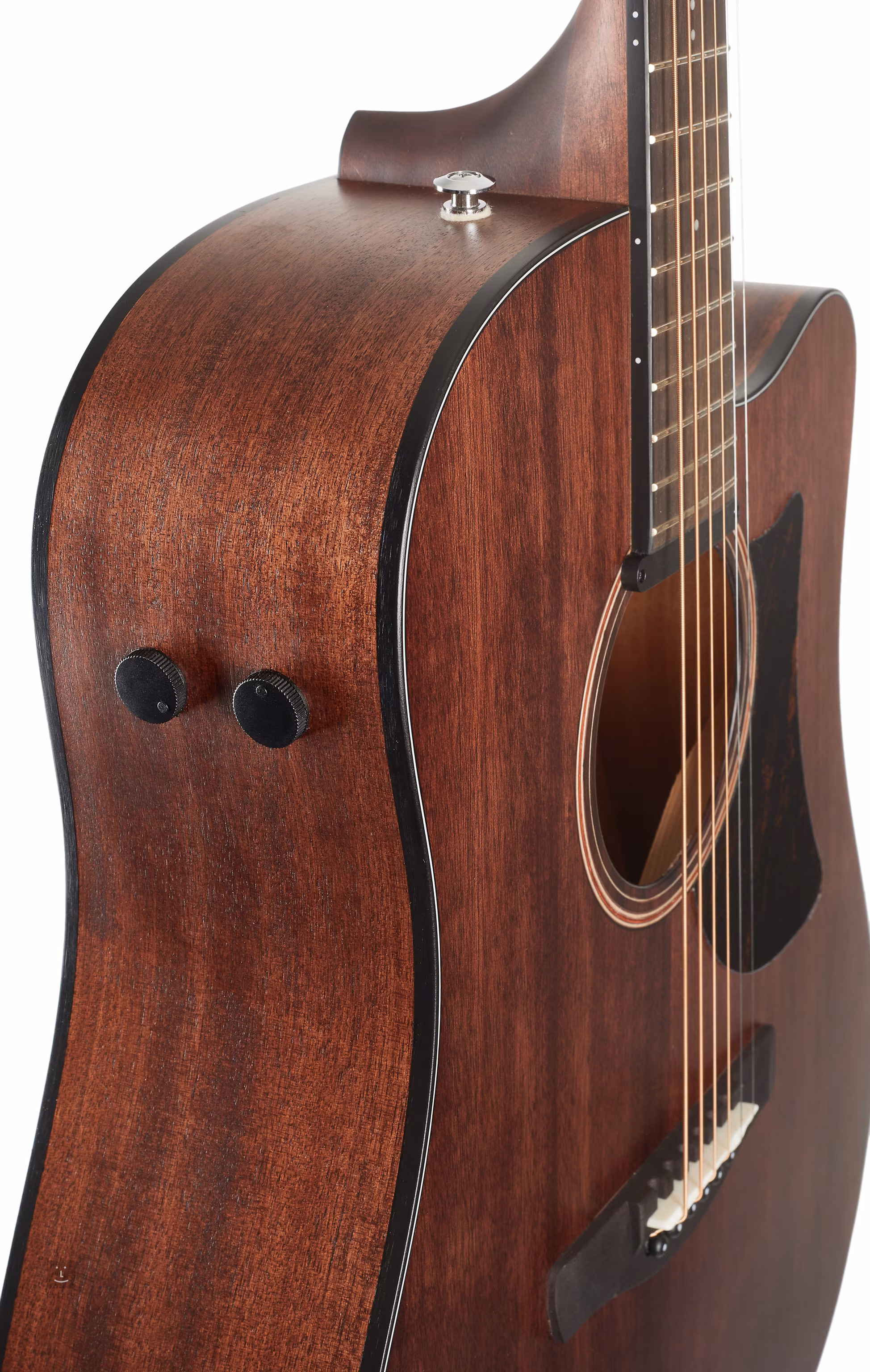 Wierne przenoszenie dźwięków akustycznych i niską mikrofonię oferuje magnetyczny pickup Ibanez AP11. Pokrętła z tyłu instrumentu regulują głośność i barwę dźwięku/EQ. Struny są zakotwiczone poprzez zerowy fret i skompensowane siodełko z kości w chromowanych ruchach Die-Cast z przełożeniem 18:1 i podstrunnicą ovangkol. Kołki Ibanez Advantage oferują zalety łatwej obsługi i pewnego mocowania strun w stosunku do standardowych modeli. Stylowy wygląd instrumentu podkreślają tradycyjne elementy w postaci drewnianego usztywnienia korpusu, drewnianej rozety i pickguarda.