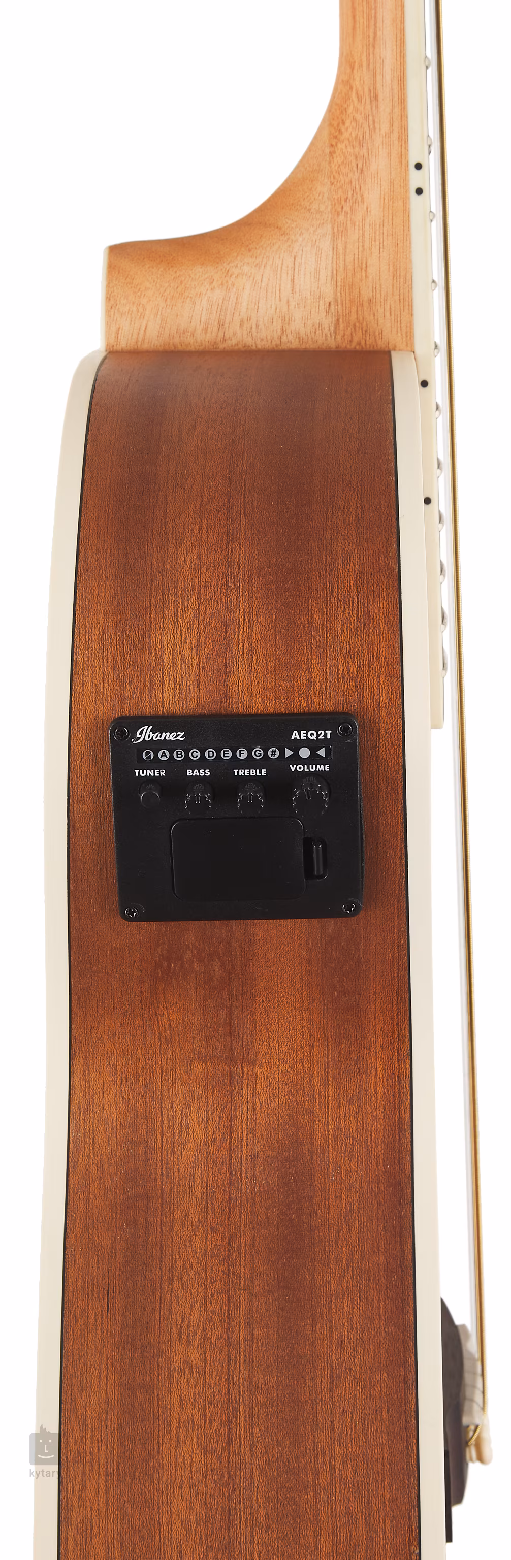 Wystarczającą głośność do występów publicznych lub gry z zespołem zapewnia elektronika Ibanez AEQ-2T ze zintegrowanym tunerem wbudowanym w siodełko gitary i przetwornikiem piezo pod korpusem. Struny umieszczone są w chromowanych maszynkach do strojenia Die-Cast i podstrunnicy z purpurowego serca. Kołki Ibanez Advantage w główce oferują przewagę nad standardowymi modelami pod względem łatwości obsługi i pewnego mocowania strun.