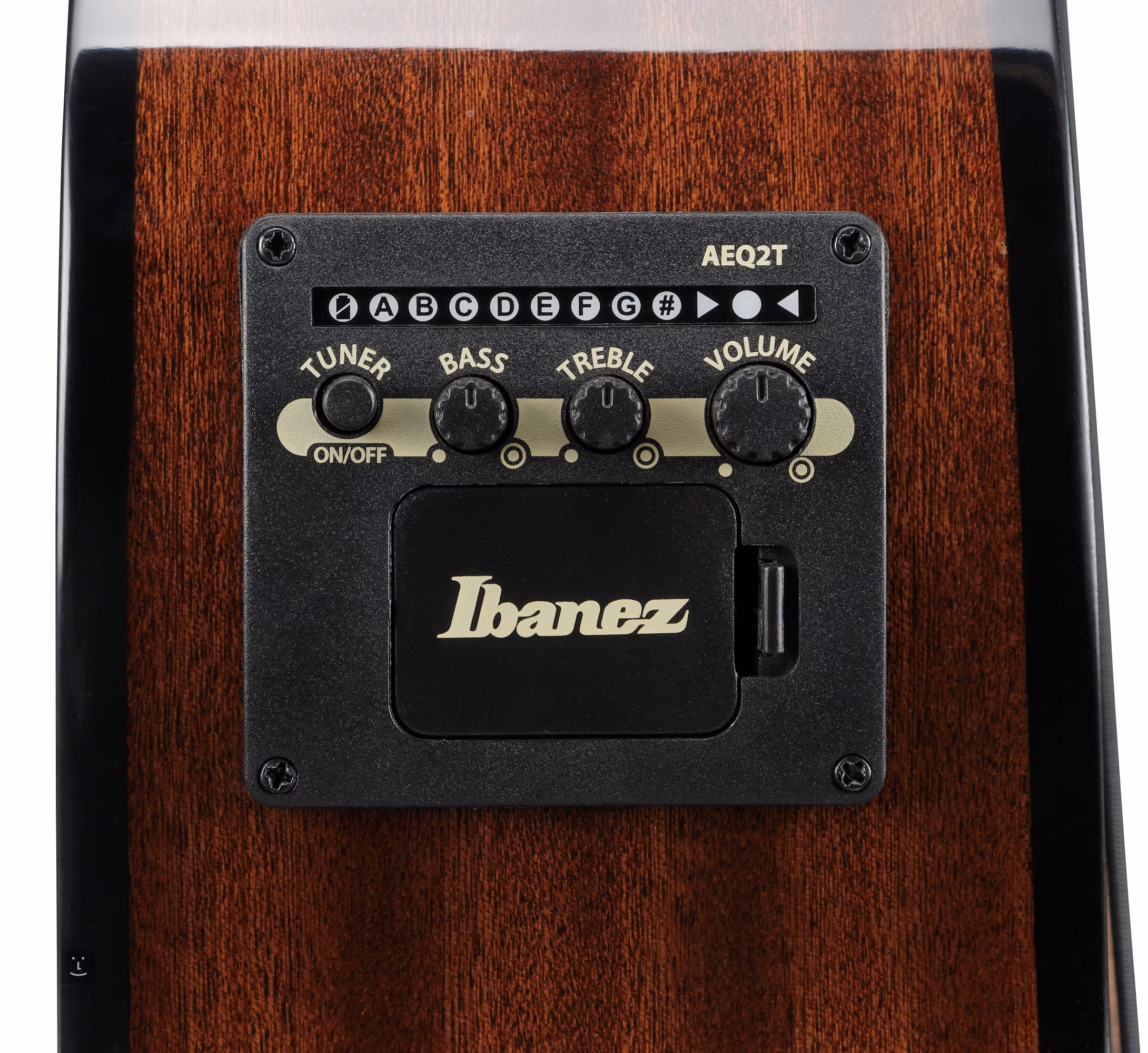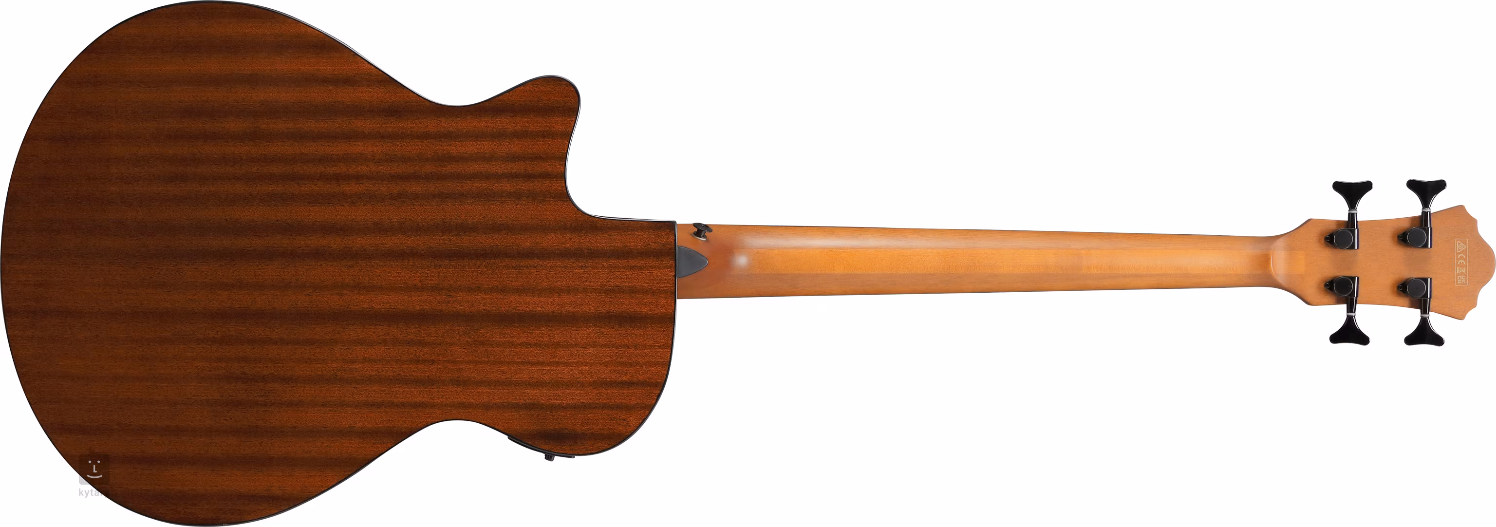Elektroakustyczna gitara basowa AEGB25E Transparent Black należy do serii AE, której instrumenty dzięki większemu korpusowi są stworzone do grania na żywo – zarówno akustycznie, jak i po podłączeniu do sprzętu. Oczywistością jest w przypadku tych instrumentów bardzo dobre wykonanie i brzmienie, którego można oczekiwać od znacznie droższych instrumentów. Przednia płyta instrumentu jest wykonana z laminowanego klonu fladrowanego, tylna płyta i boki są wykonane z laminowanego sapeli. Rysunek klonu fladrowanego podkreśla błyszczący lakier i kolorowa wykończenie Transparent Black, naturalne wykończenie i błyszczący lakier tylnej płyty i boków pozwalają wyróżnić rysunek sapeli. Do szyjki złożonej z trzech kawałków nyatohu i klonu przyklejono palisandrowy gryf z dwudziestoma progami. Struny są zamocowane w firmowych mechanizmach die-cast i profilowanym palisandrowym mostku. Komfort gry zapewnia podpórka kciuka wykonana z drewna merbau. Za przetwarzanie dźwięku odpowiada piezoelektryczny przetwornik podstrunnicowy, uzupełniony elektroniką Ibanez AEQ-2T, która oprócz wbudowanego stroika zapewnia również dwupasmowy korektor i regulację głośności.