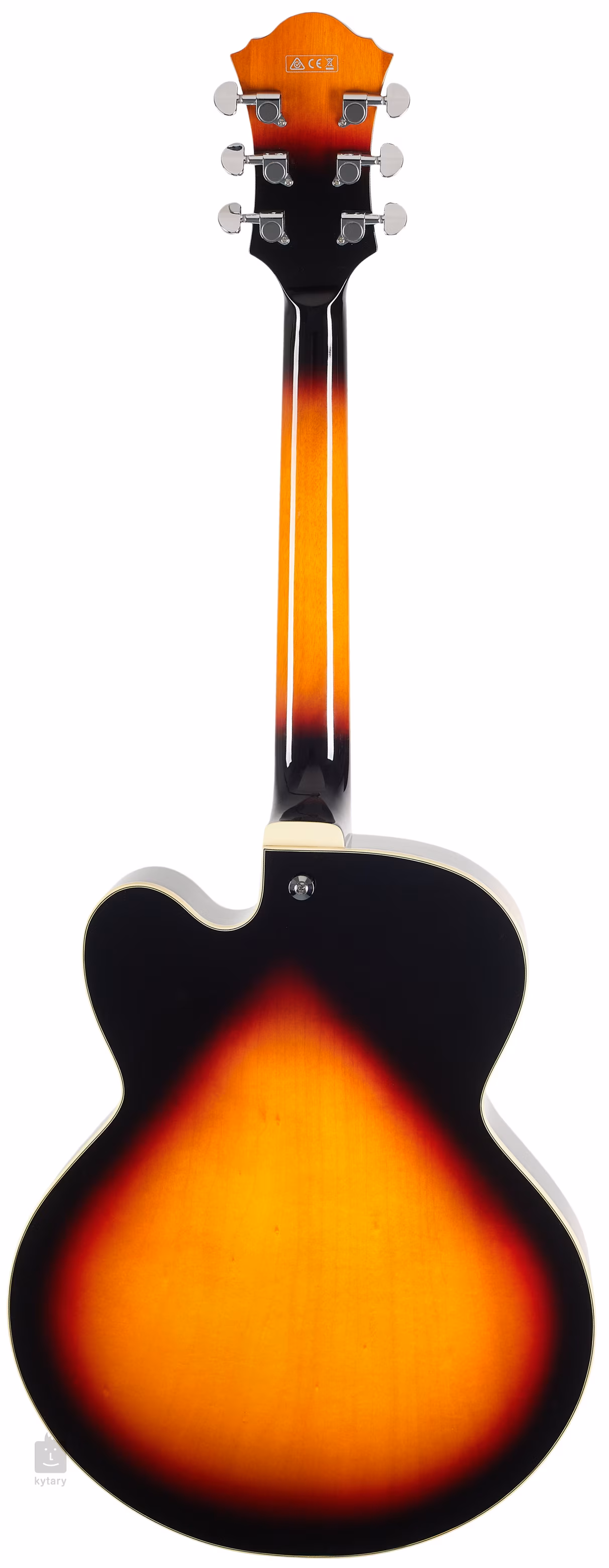 Korpus gitary AF75 Brown Sunburst jest wykonany z warstwowego drewna lipowego. Do szyjki z egzotycznego drewna nyatoh przyklejono palisandrowy gryf z dwudziestoma progami rozmiaru Medium. Orientację na gryfie ułatwiają blokady pozycyjne z imitacji masy perłowej.