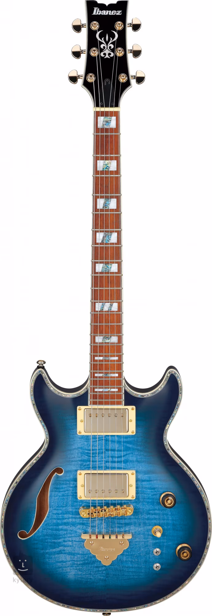 Ibanez AR520HFM-LBB to gitara elektryczna o konstrukcji semi-hollowbody z podwójnym wycięciem. Korpus instrumentu wykonany jest z wierzchu z klonu płomienistego o fantazyjnym usłojeniu, tył z drewna okoumé, a korpus z klonu komorowego. Trzyczęściowa szyjka z klonu przyklejona jest do podstrunnicy z jatoby wyposażonej w dwadzieścia dwa średniej wielkości frezy. Bloki pozycjonujące wykonane z imitacji macicy perłowej i abalonu ułatwiają orientację na powierzchni podstrunnicy.