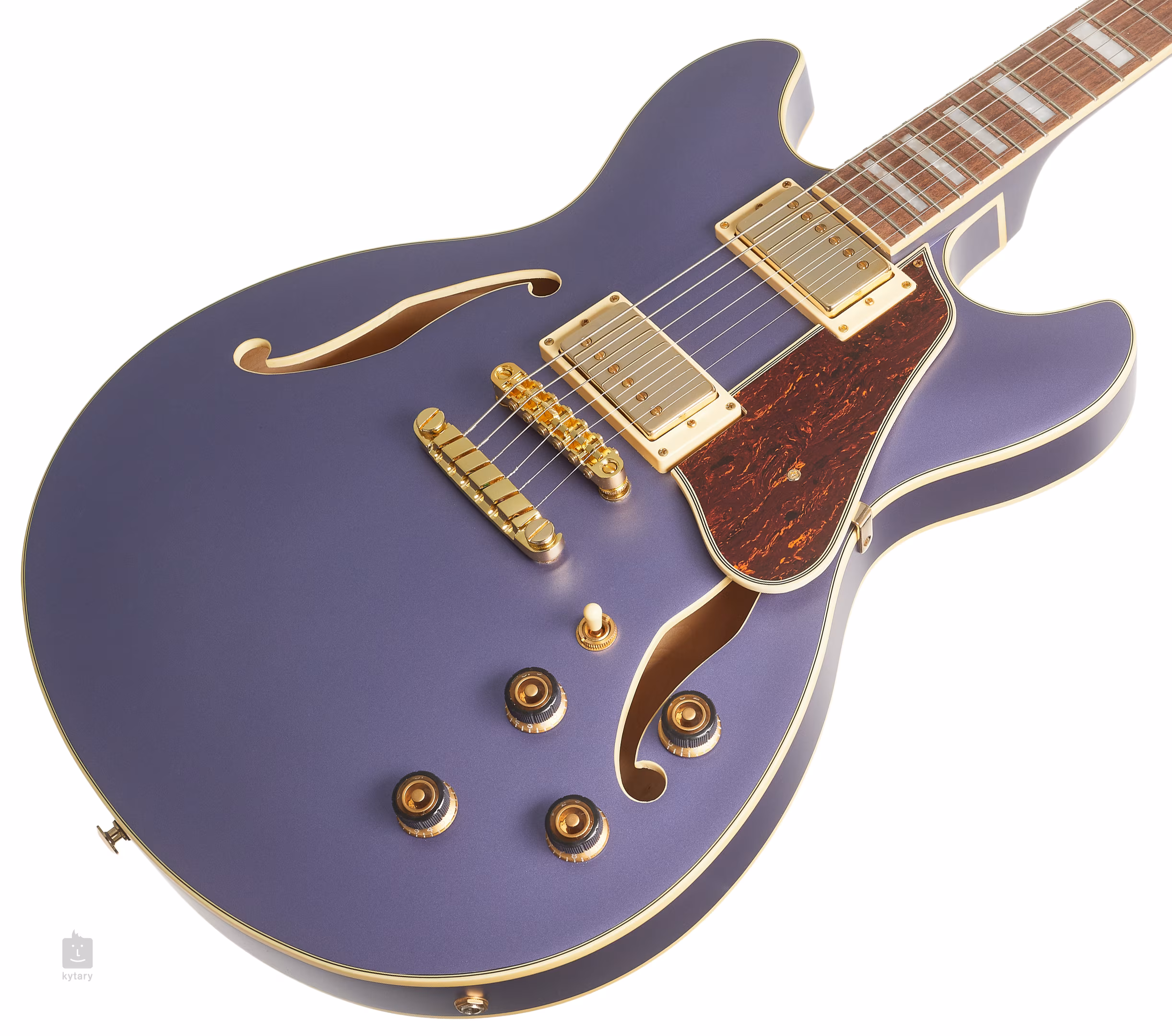 Struny są zakotwiczone przez firmowe maszynki do strojenia, główkę Gibraltar Performer i zmieniacz strun Quik Change III do szybkiej i łatwej wymiany strun. Stylowy wygląd instrumentu podkreśla bindowanie korpusu, podstrunnicy i główki, imitacja skorupy żółwia, złoty osprzęt i wykończenie Metallic Purple Flat.