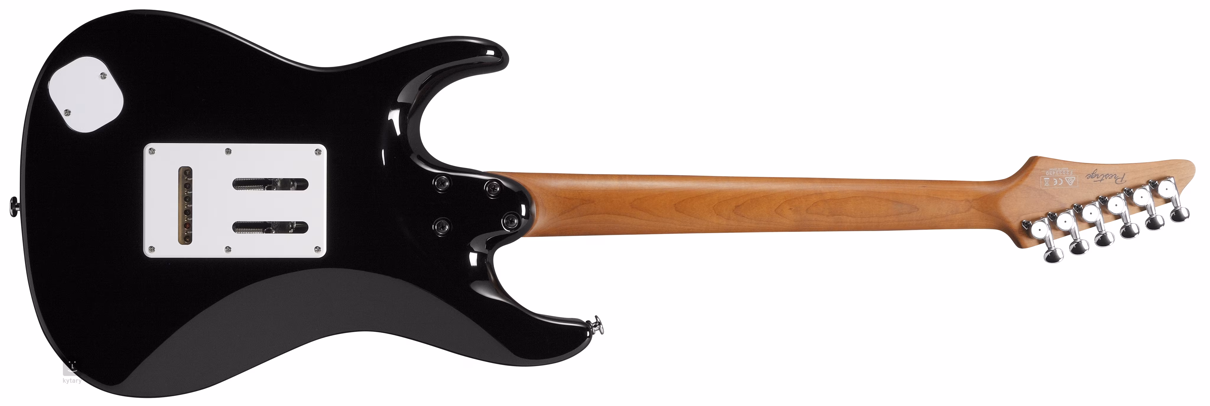 Korpus AZ2204B-BK wykonany jest z olchy. Dzięki ergonomicznemu kształtowi tylnej części korpusu, gitara naturalnie leży w dłoni. Obróbka cieplna klonowej szyjki i podstrunnicy (obróbka S-TECH) poprawia ich właściwości (stabilność, trwałość, odporność na wodę i wahania temperatury), nadając jednocześnie gitarze wygląd i wrażenie dojrzałego/wygrywanego instrumentu. Podstrunnica wyposażona jest w nierdzewne frezy w rozmiarze Jumbo, a jej zaokrąglone krawędzie zapewniają graczom wygodniejszy chwyt szyjki. Czarne kropki pozycyjne i luminescencyjne znaczniki z boku ułatwiają poruszanie się po powierzchni podstrunnicy.