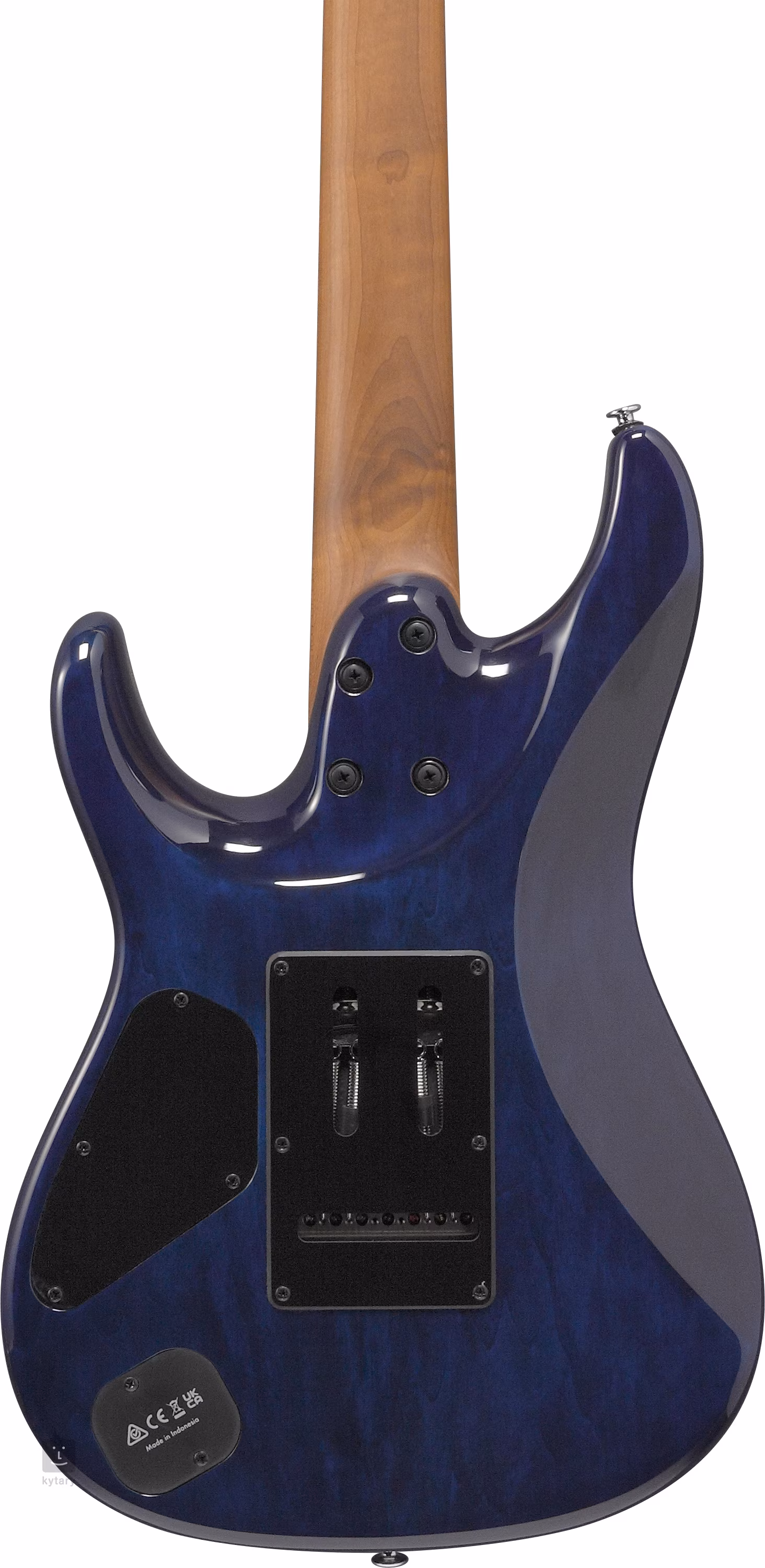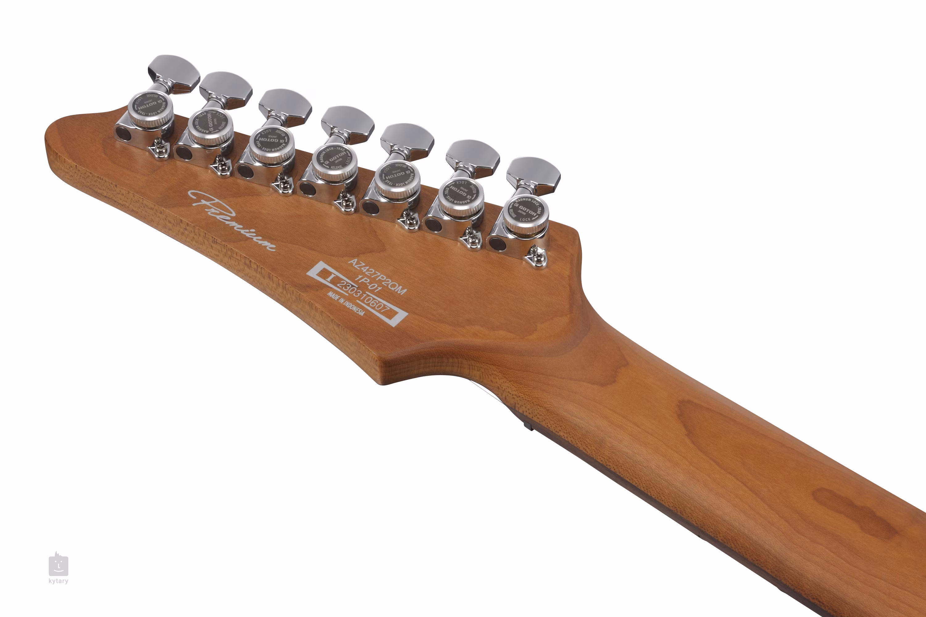 Limonkowy korpus siedmiostrunowej gitary AZ427P2QM-TUB jest ozdobiony spektakularnym fornirem z klonu płomienistego i imponującym wykończeniem Deep Ocean Blonde. Dzięki ergonomicznemu ukształtowaniu tylnej części korpusu, gitara idealnie leży w dłoni. Do klonowej szyjki przyklejona jest palisandrowa podstrunnica wyposażona w dwadzieścia cztery progi jumbo ze stali nierdzewnej. Obróbka cieplna szyjki poprawia stabilność, trwałość i odporność na wodę i wahania temperatury, jednocześnie nadając gitarze wygląd i styl dojrzałego / ogranego instrumentu. Kropki pozycyjne z masy perłowej i świecące markery z boku ułatwiają nawigację po powierzchni podstrunnicy.