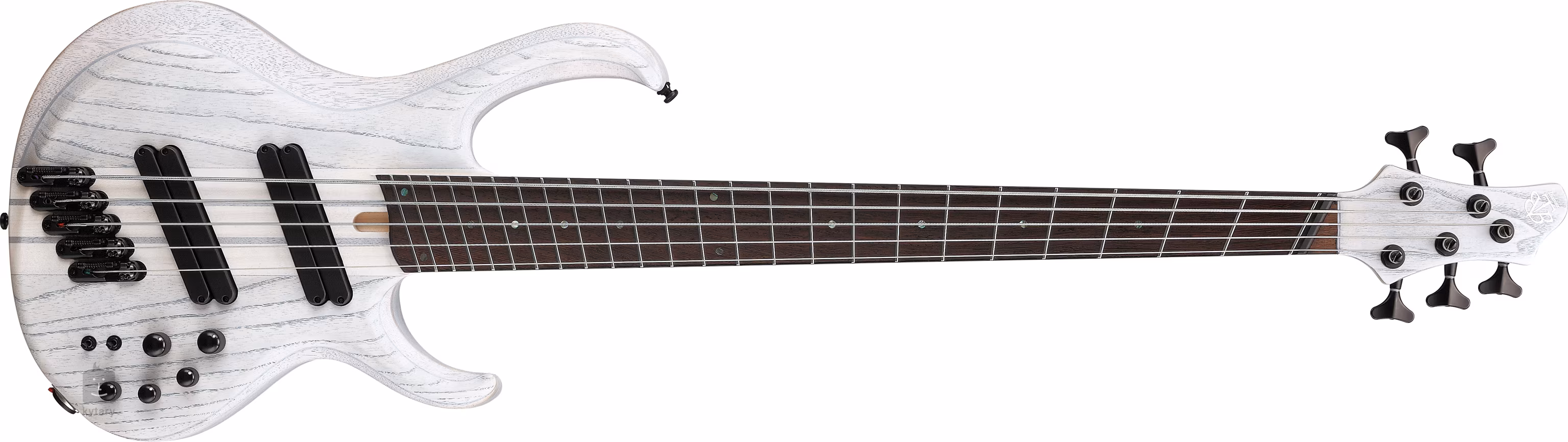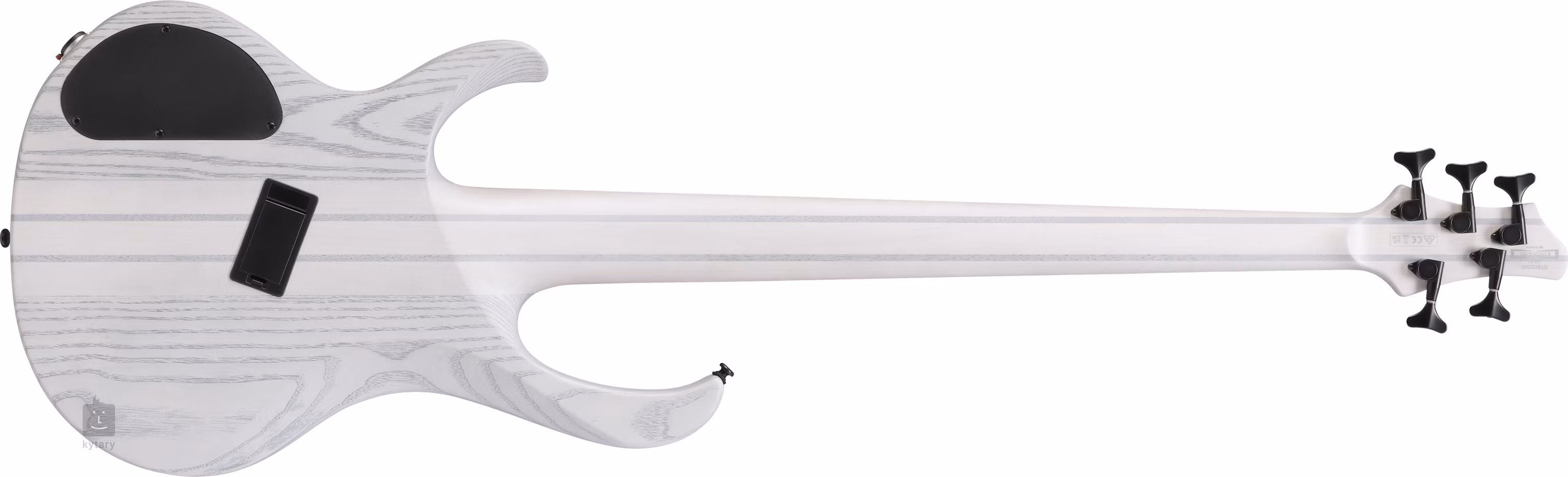 Konstrukcja pięciostrunowego basu BTB865MS Transparent White składa się z pięcioczęściowej szyjki z klonu i orzecha włoskiego, jesionowych i okoumé skrzydeł korpusu oraz jesionowego topu. Przelotowa szyjka wraz z grafitowym usztywnieniem szyjki gwarantuje stabilne brzmienie z długim sustainem. Drewniana podstrunnica panga panga wyposażona jest w dwadzieścia cztery progi (w tym dodatkowy zero) ze stali nierdzewnej w rozmiarze Medium. Ciekawą cechą tego instrumentu jest zmienna menzura (889 - 940 mm) gwarantująca maksymalny komfort gry i zrównoważone napięcie strun.