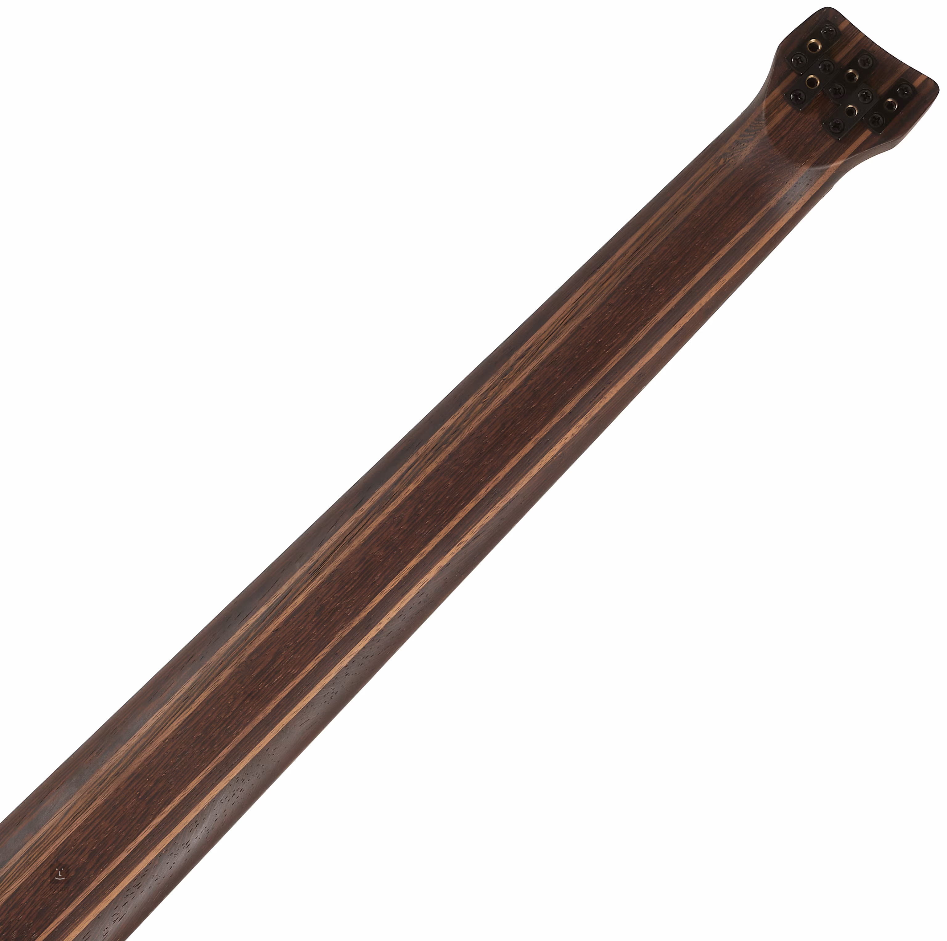Szyjka basu została wykonana z palonego klonu i orzecha włoskiego oraz wzmocniona grafitowymi prętami, co zwiększa jej stabilność, odporność na wilgoć i zmiany temperatury. Taka konstrukcja zapewnia, że bas pozostaje nastrojony i oferuje długotrwały sustain. Dodatkowo, podświetlane boczne znaczniki na podstrunnicy zapewniają doskonałą widoczność podczas gry w ciemnych warunkach. Rozstaw strun wynosi 762 mm.
