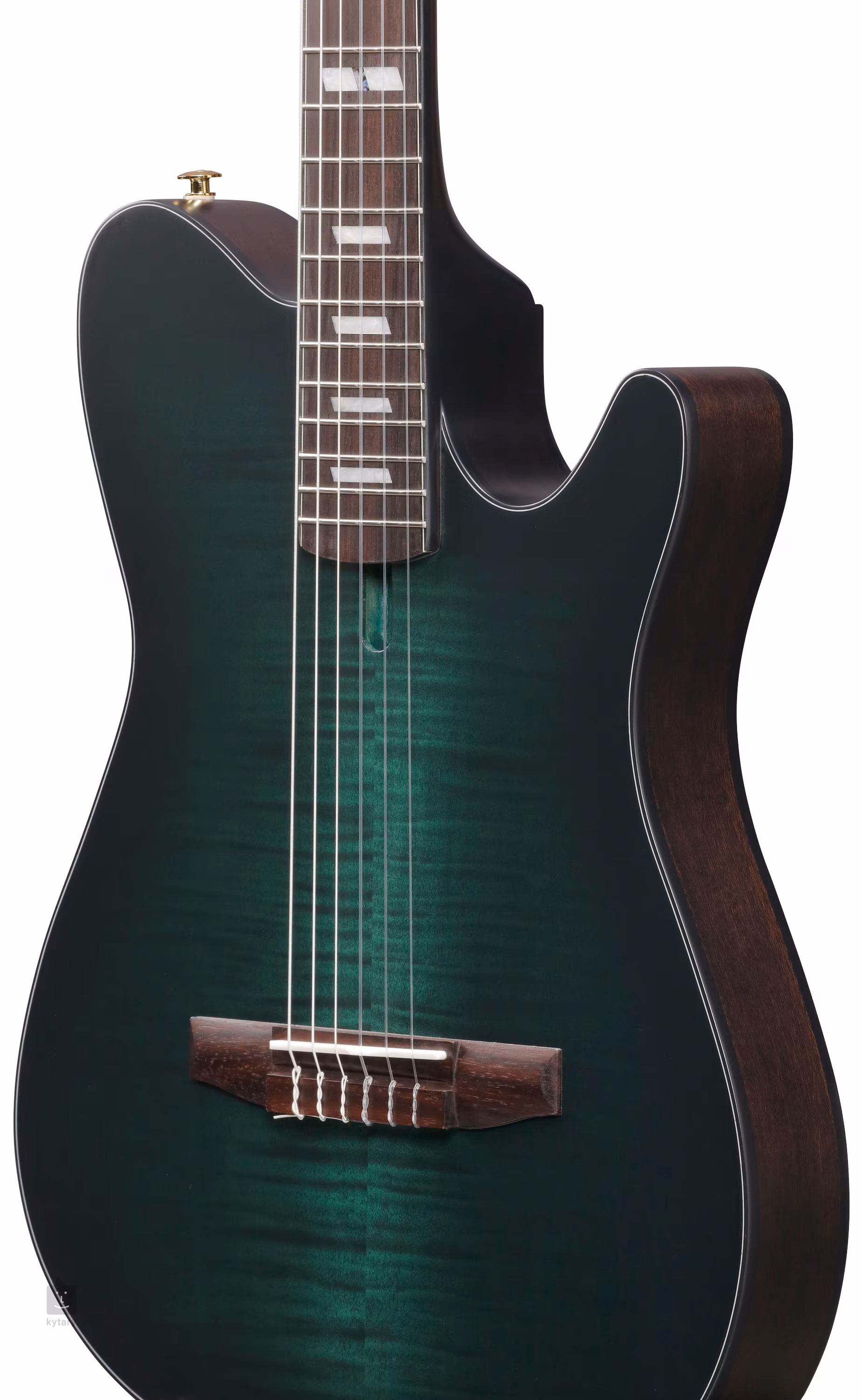 Klasyczne gitary elektroakustyczne Ibanez FRH to nowoczesne instrumenty z brzmieniem nylonowych strun i grywalnością gitar elektrycznych. Oferuje kompaktowy, wąski korpus, świetne wykończenie nawet w wyższych pozycjach podstrunnicy, węższy próg zerowy (46 mm) i bardziej płaski promień podstrunnicy (15,75 cala). Boczny port dźwiękowy pozwala lepiej odbierać i słyszeć czysty akustyczny ton instrumentu, a gitara jest również znacznie mniej podatna na sprzężenia zwrotne ze względu na brak otworu dźwiękowego na płycie rezonansowej.