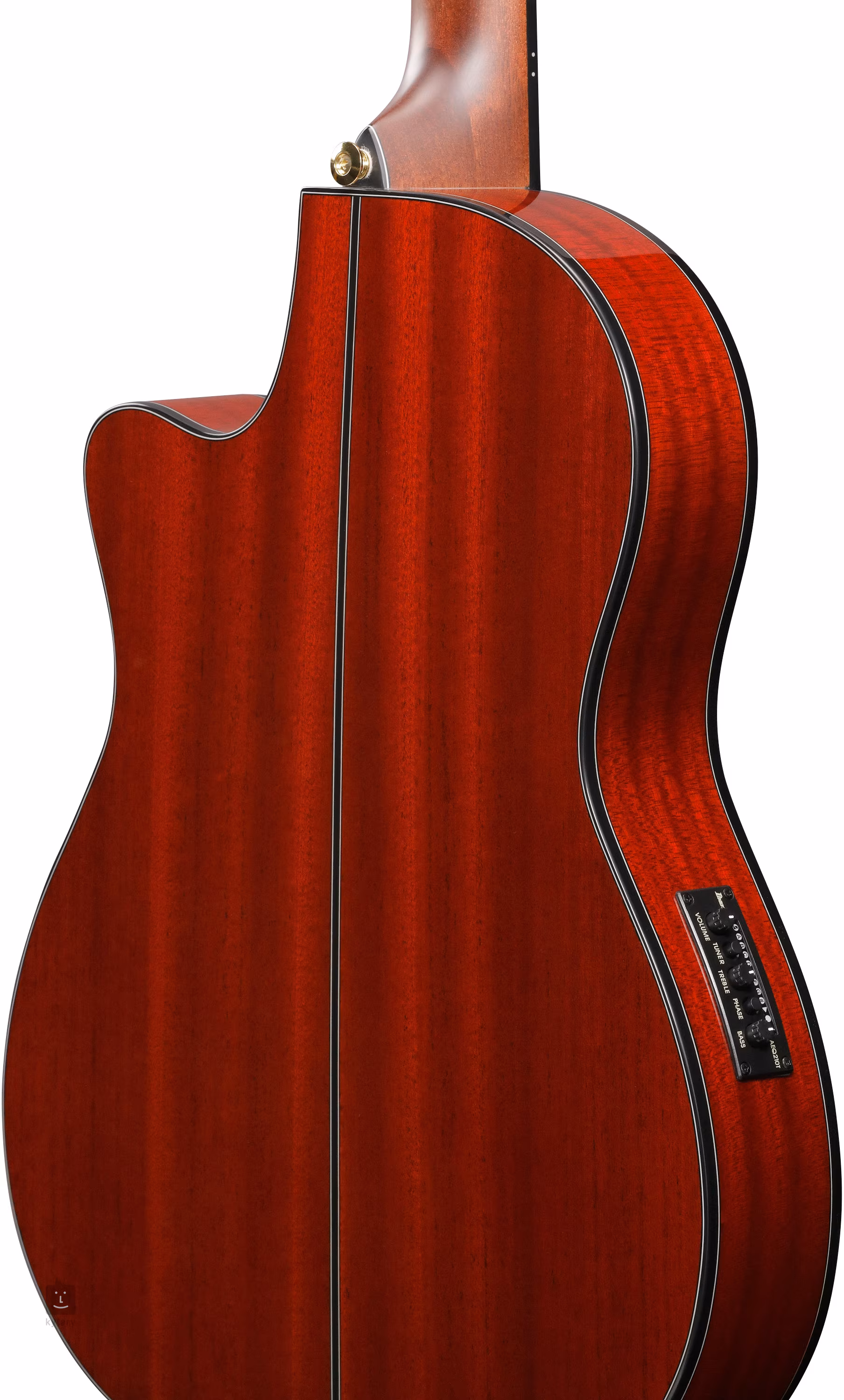 O wierne przenoszenie dźwięku dba podstrunnicowy przetwornik piezoelektryczny i przedwzmacniacz Ibanez AEQ210T z dwupasmowym korektorem, inwerterem fazy i wbudowanym stroikiem. Sygnał z gitary można wysłać na zewnątrz za pomocą kabla instrumentalnego (jack 6,3 mm) lub symetrycznego wyjścia XLR. Struny są zamocowane w firmowych stroikach w złotym wykonaniu z czarnymi kołkami i palisandrowym mostkiem. Ładne wykończenie podkreśla dwustronna czarna obwódka korpusu i ozdobna rozeta.
