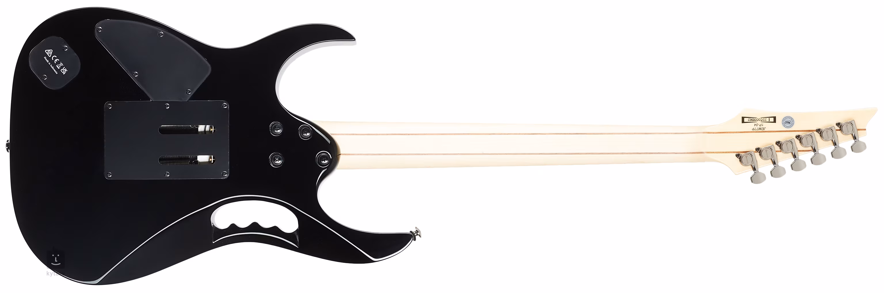 Na główce znajduje się mostek Edge-Zero II Tremolo, a za brzmienie odpowiadają dwa przetworniki DiMarzio Gravity Storm humbucker (alnico) oraz jeden DiMarzio Evolution single pickup (alnico). Osprzęt jest czarny.