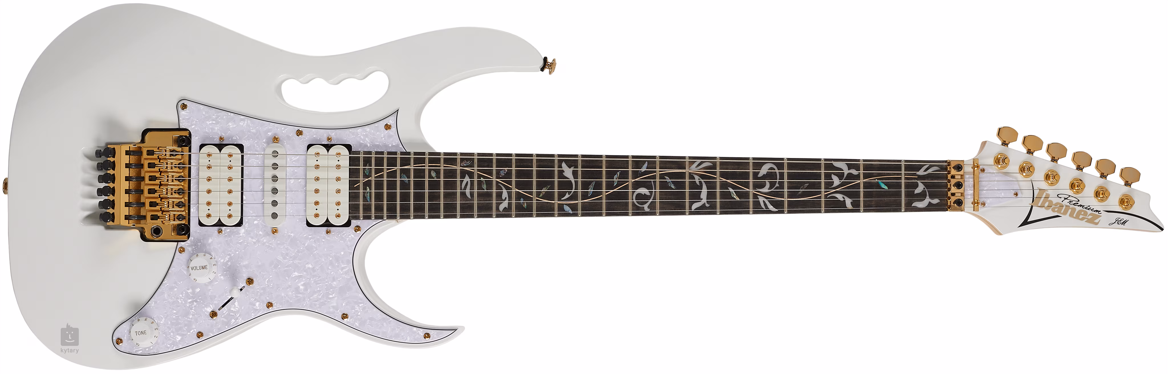 Ta gitara elektryczna japońskiej marki Ibanez to sygnowany model słynnego czarodzieja gitary Steve'a Vai. Ma wyraźne znaki rozpoznawcze w postaci wycięcia w korpusie z małpim uchwytem i dekoracji podstrunnicy z masy perłowej Tree-of-life, które natychmiast skojarzysz z tą osobowością.
